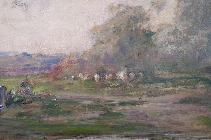 An outstanding rural landscape scene of large proportions by Lois Henri Foreau (French, 1866-1938). Oil on canvas.