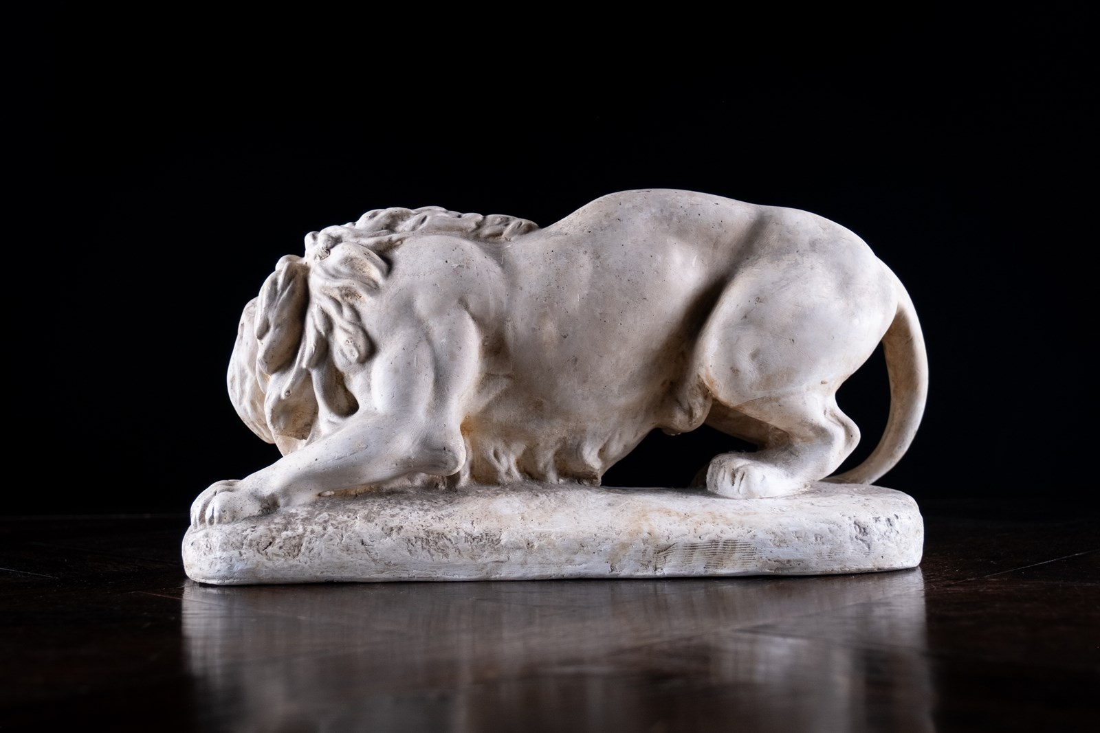 An impressive plaster of large proportions in the manner of Antoine-Louis Barye (1795-1875) depicting a prowling lion, circa. early 20th century.