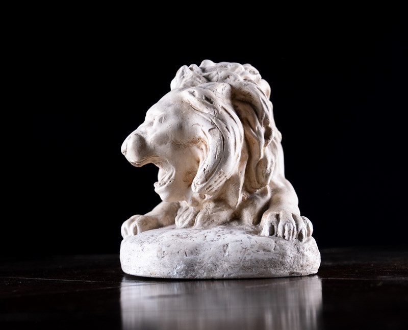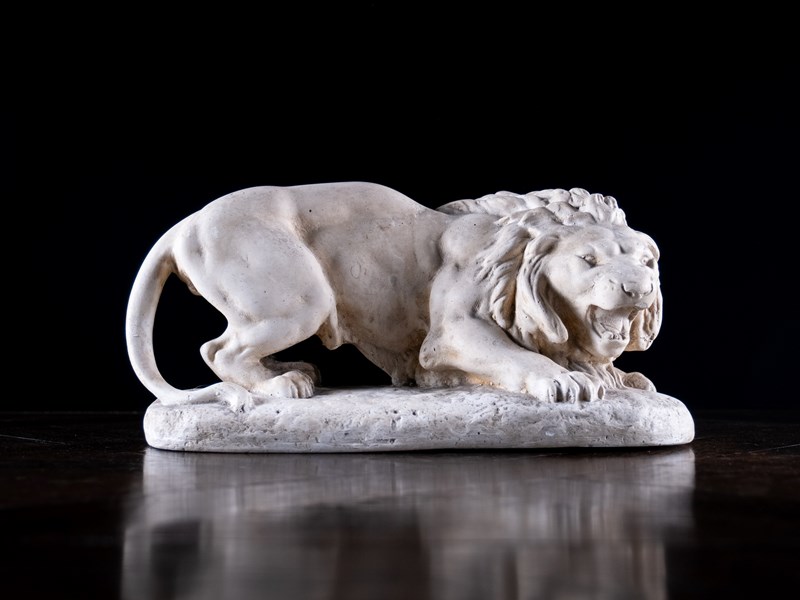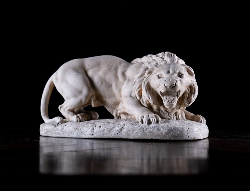 The lion is of arched form with lowered front legs, raised hind and a roaring expression. Lights signs of wear commensurate with age. Great colour throughout.