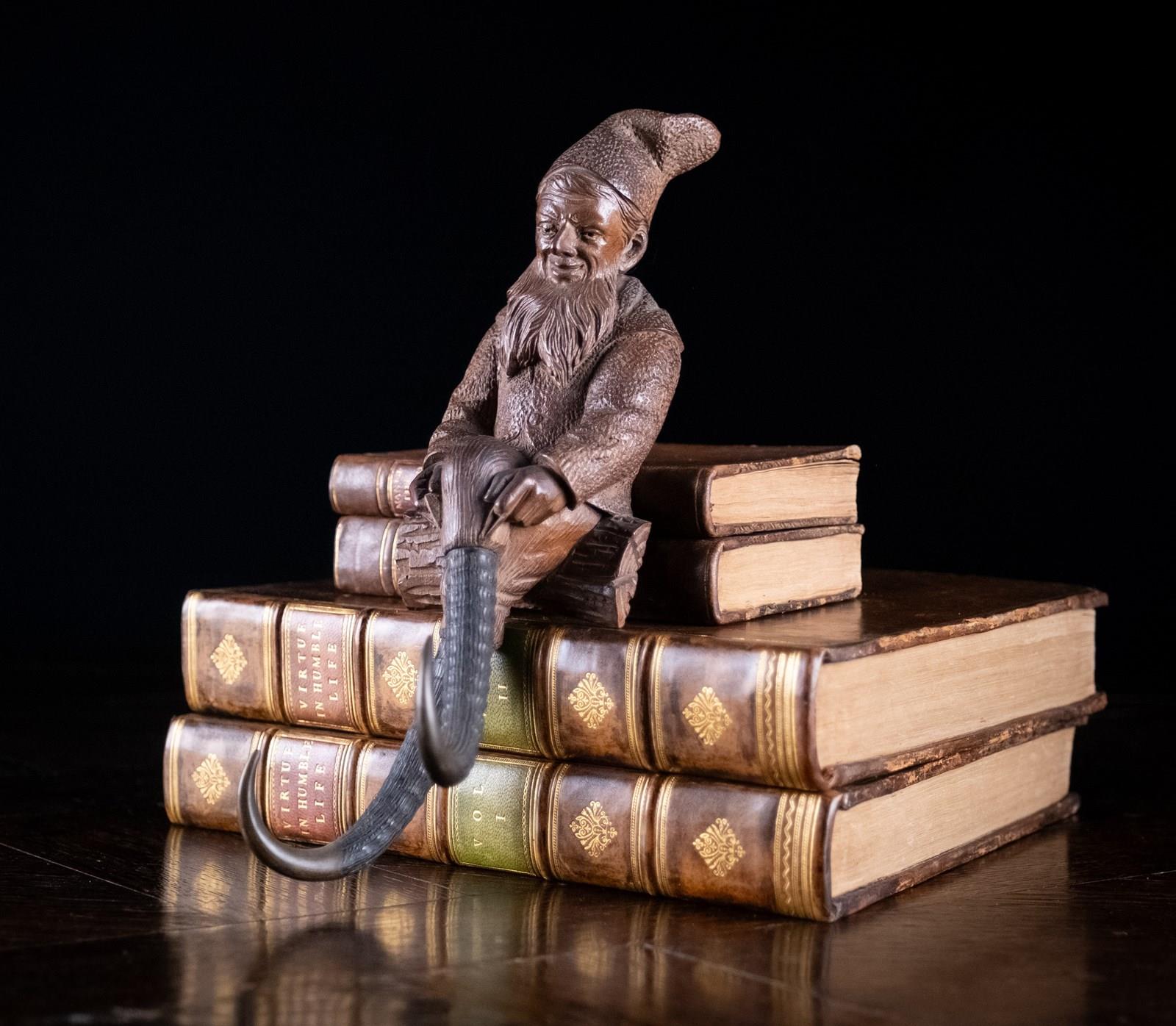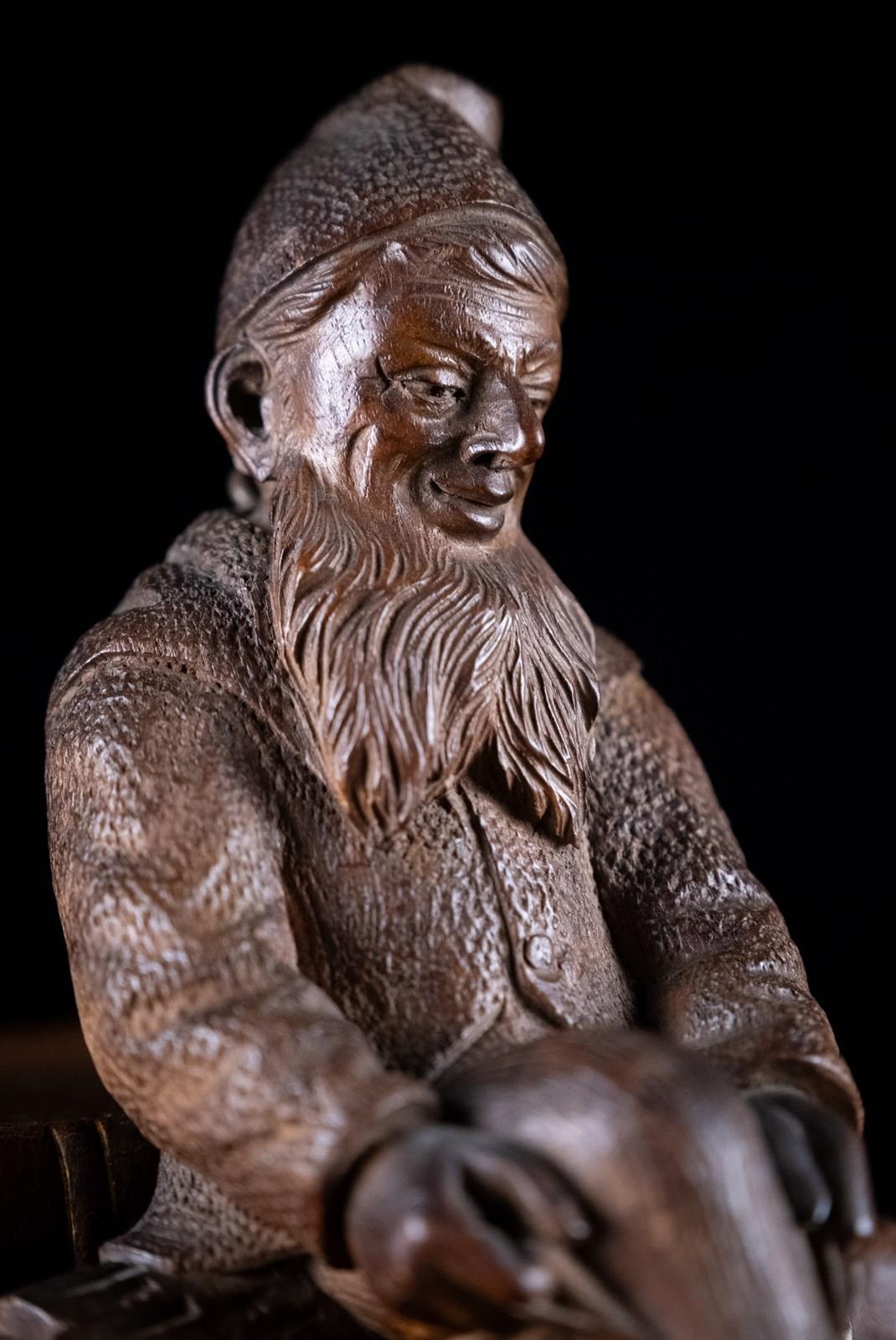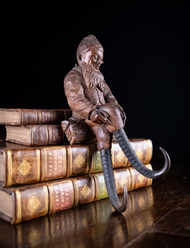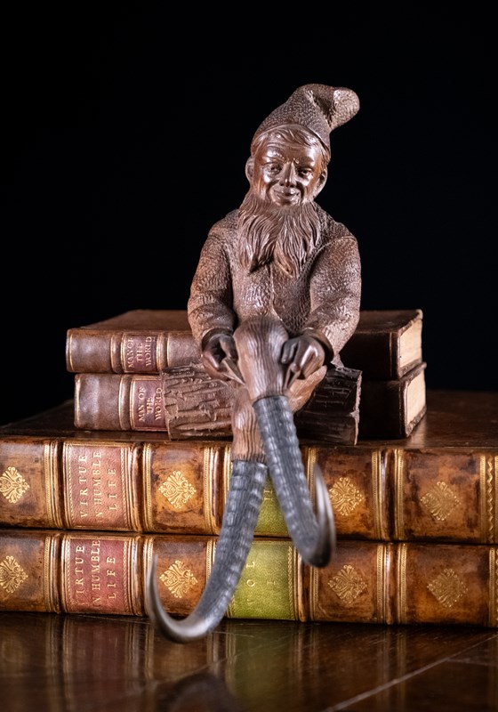 A superb 19th century black forest wood hand carved whip hook in the form of a gnome. Circa. 1880.