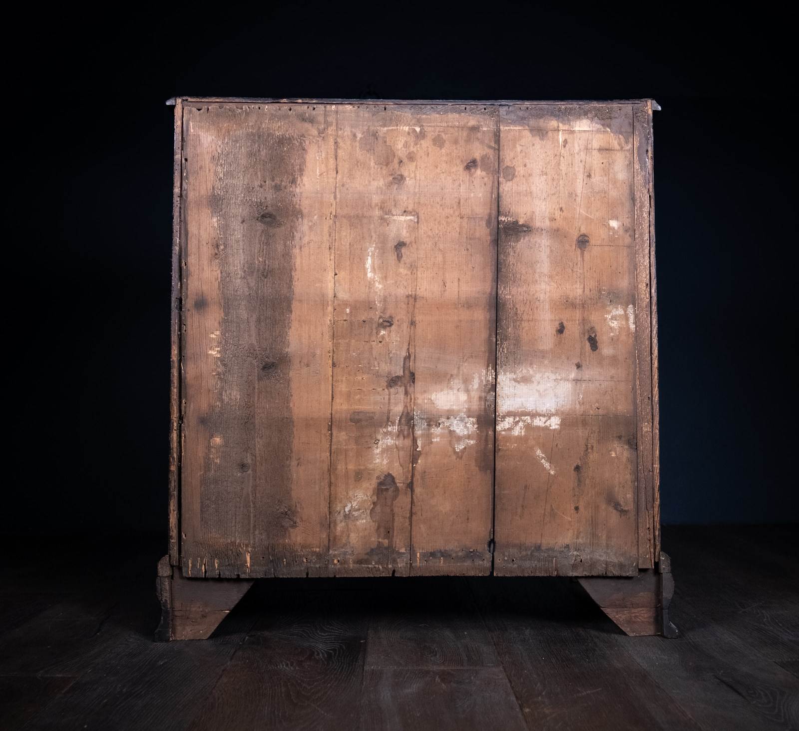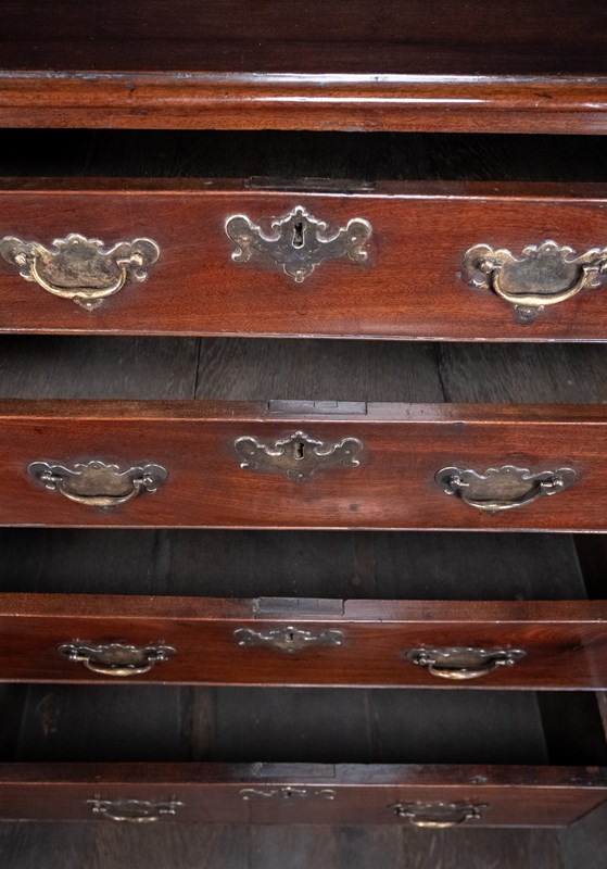 The brasses are historic but appropriate replacements. All drawers open and close with ease. There are some small areas of wear commensurate with age but generally the piece displays extremely well and looks outstanding in situ.