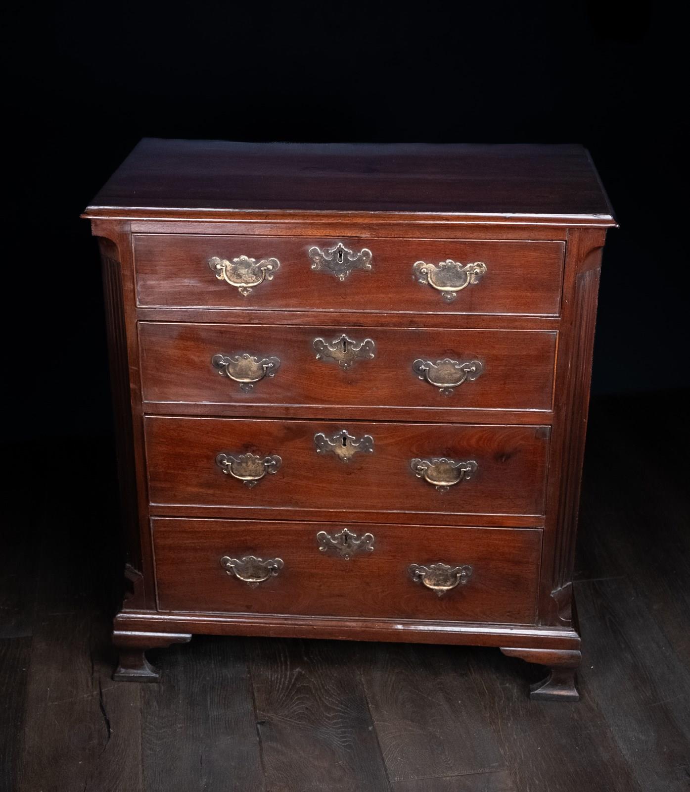 A superb George III period mahogany chest of drawers of diminutive proportions and glowing colour.