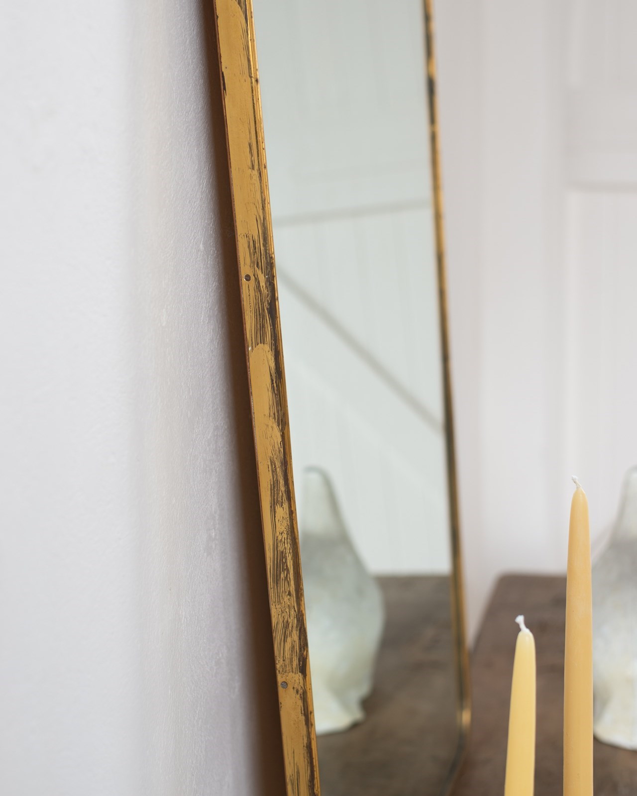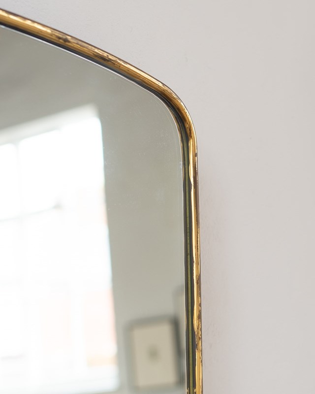 Large 1950S Italian Brass Framed Tapered Rectangular Mirror