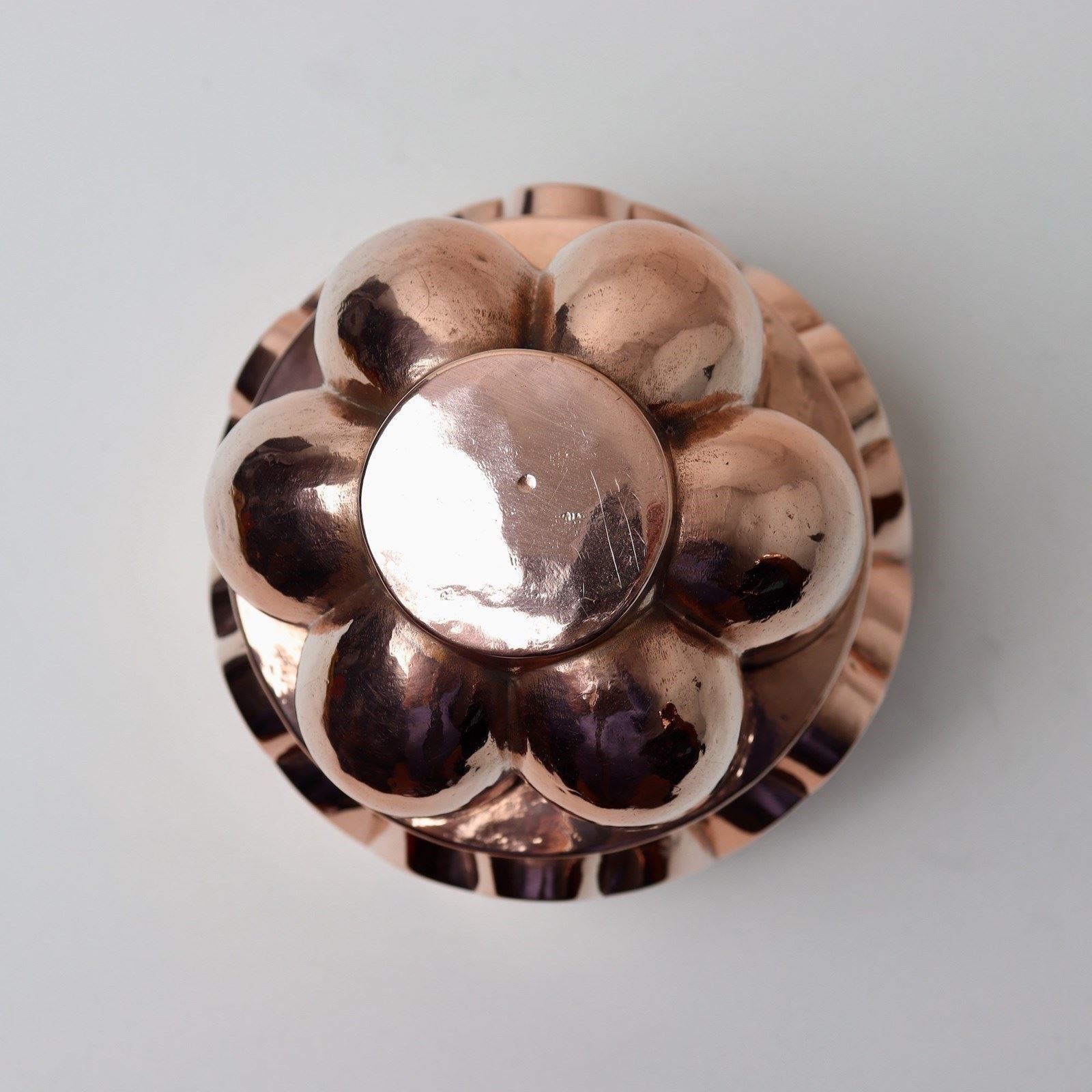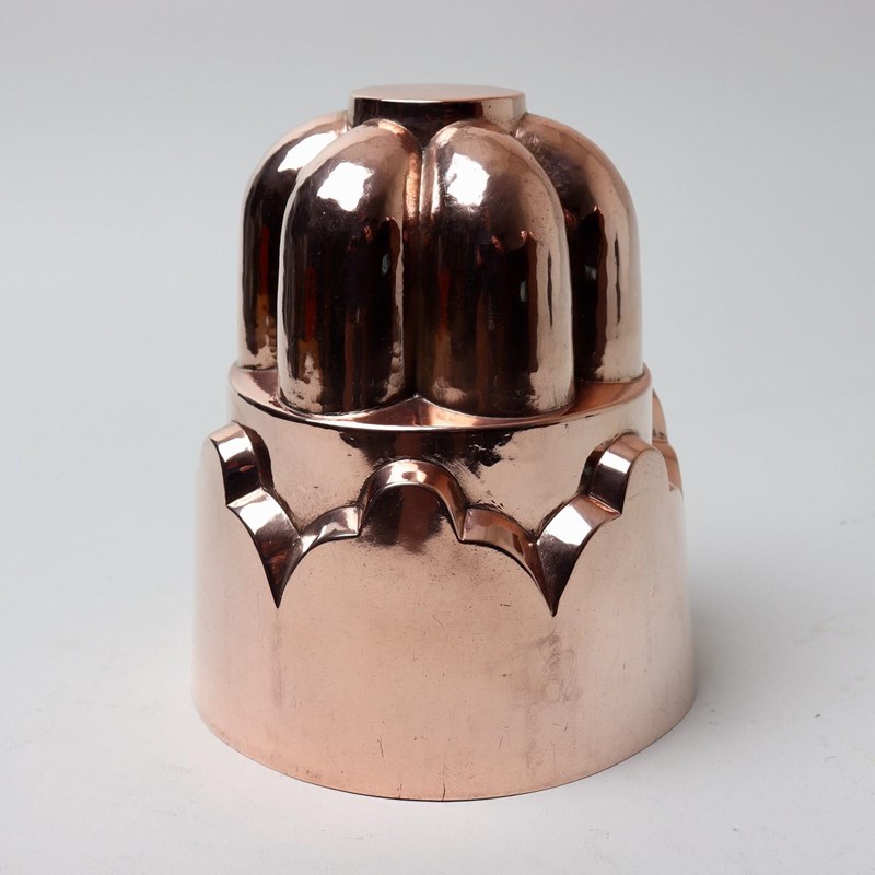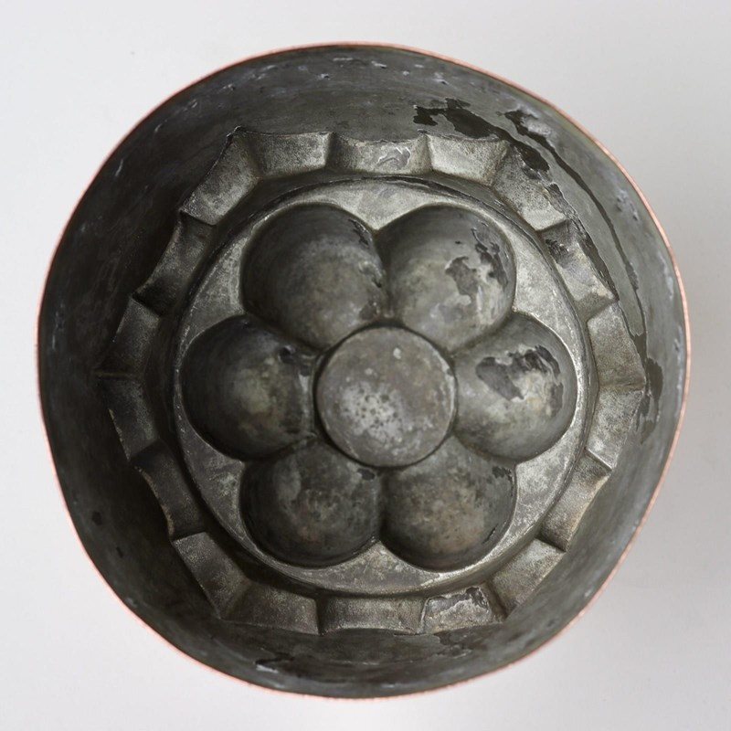 The design consists of a wide fluted top section above an attractively scalloped base. It is made from quite a heavy gauge of copper and it is in excellent condition. The tinning, to the interior, is worn.