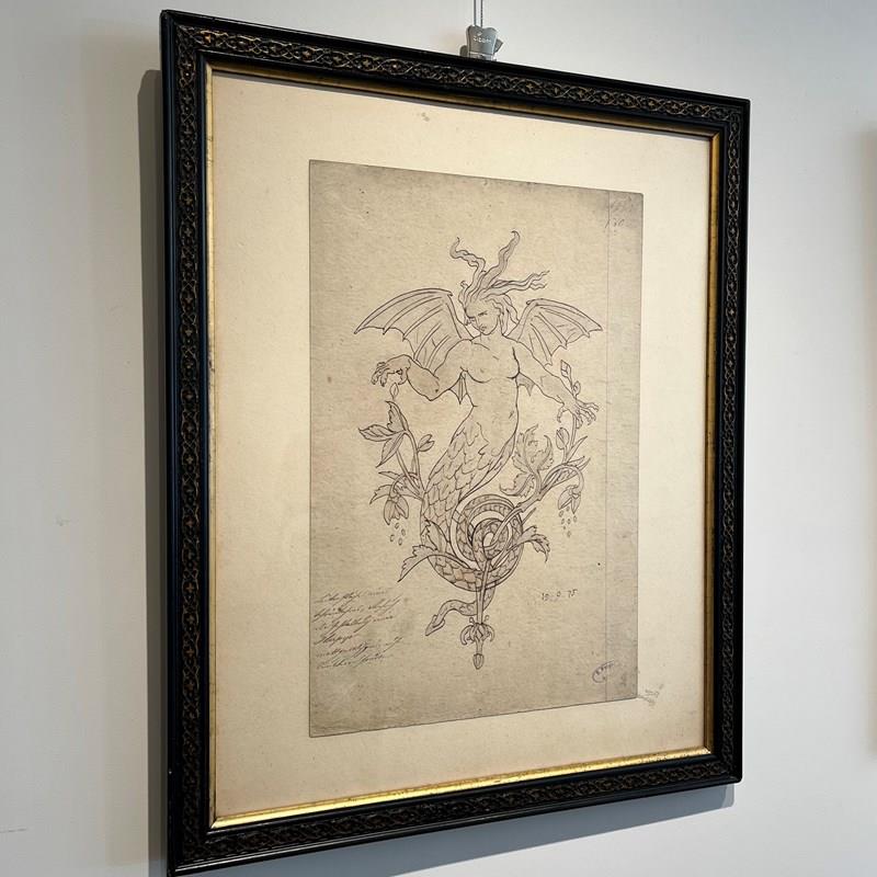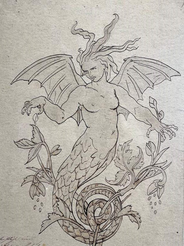 A Pair Of 19Th Century Drawings Of Mythological Water Nymph