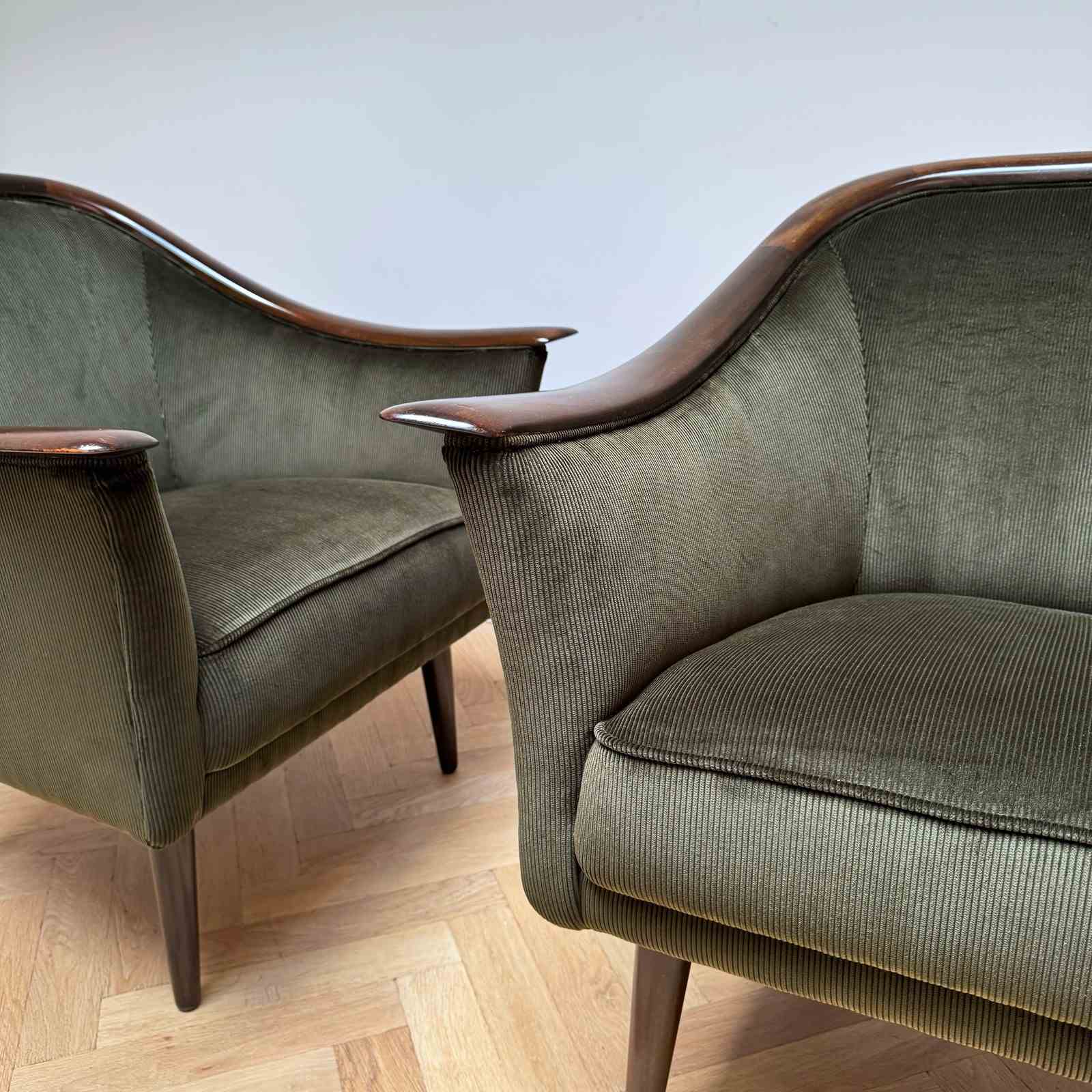 A very smart and comfortable pair of armchairs. Refurbished and in excellent condition.