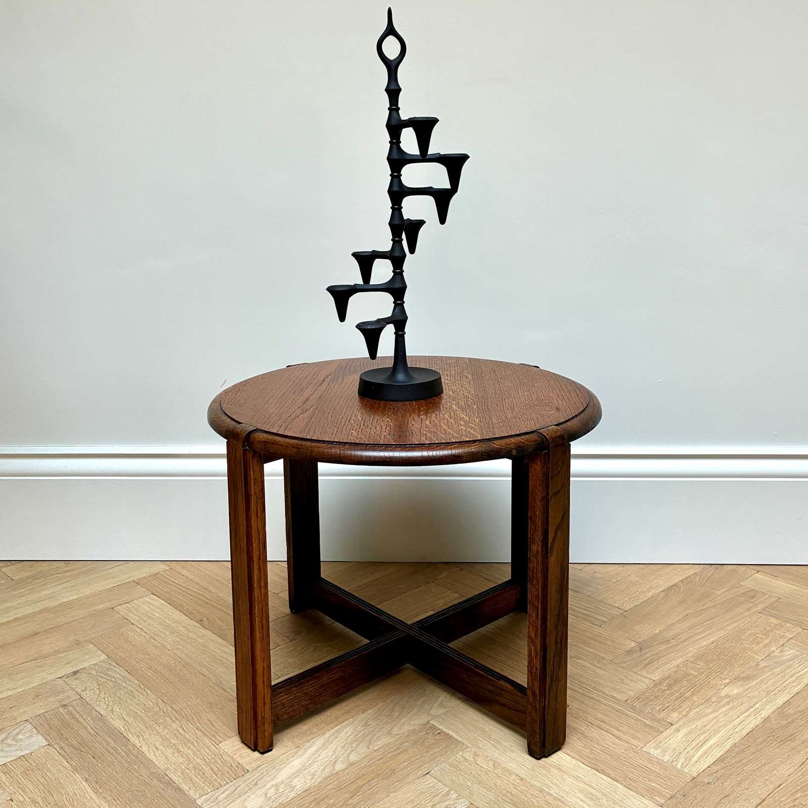 A small round oak sidetable