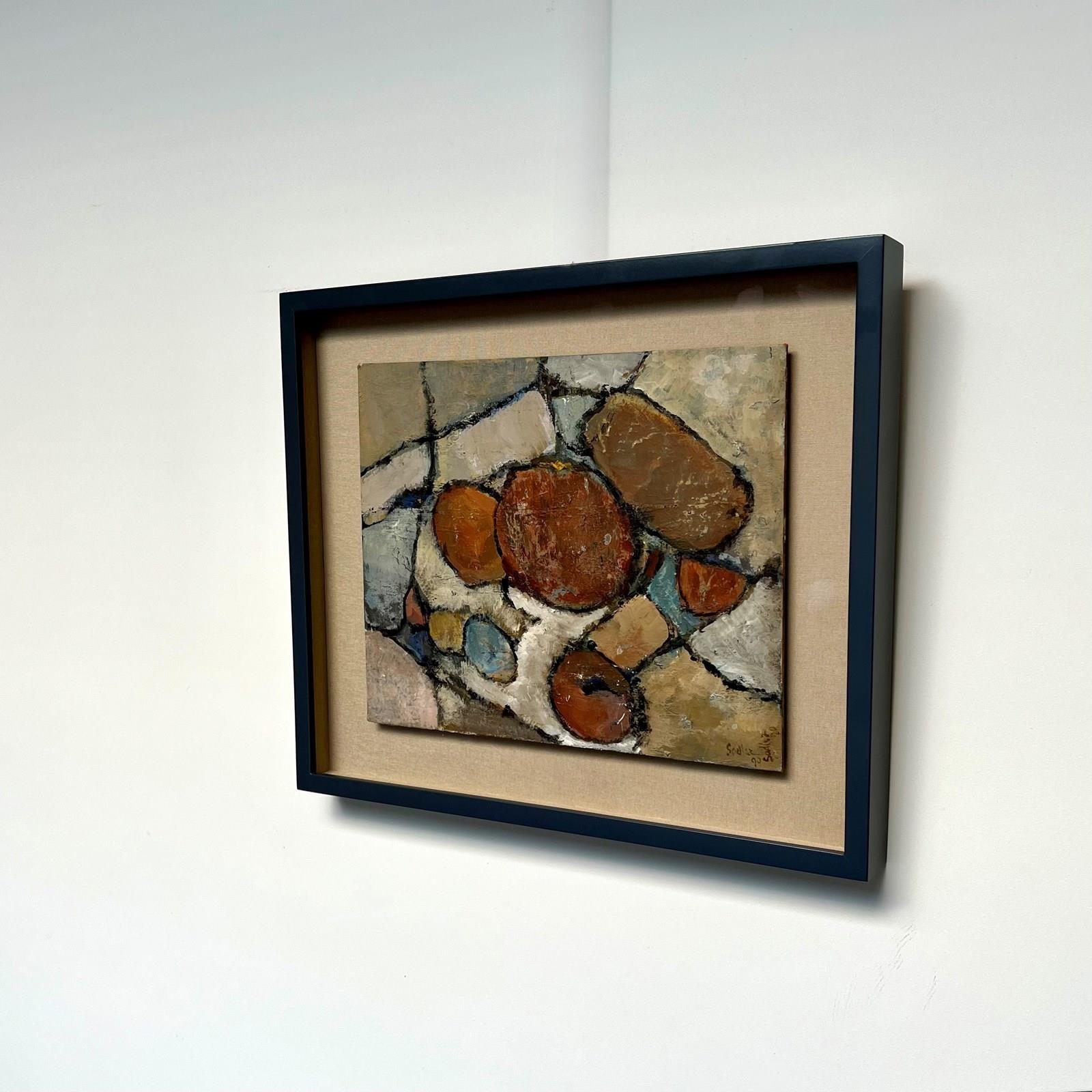 Newly framed in a dark grey wooden frame with non reflective glass.