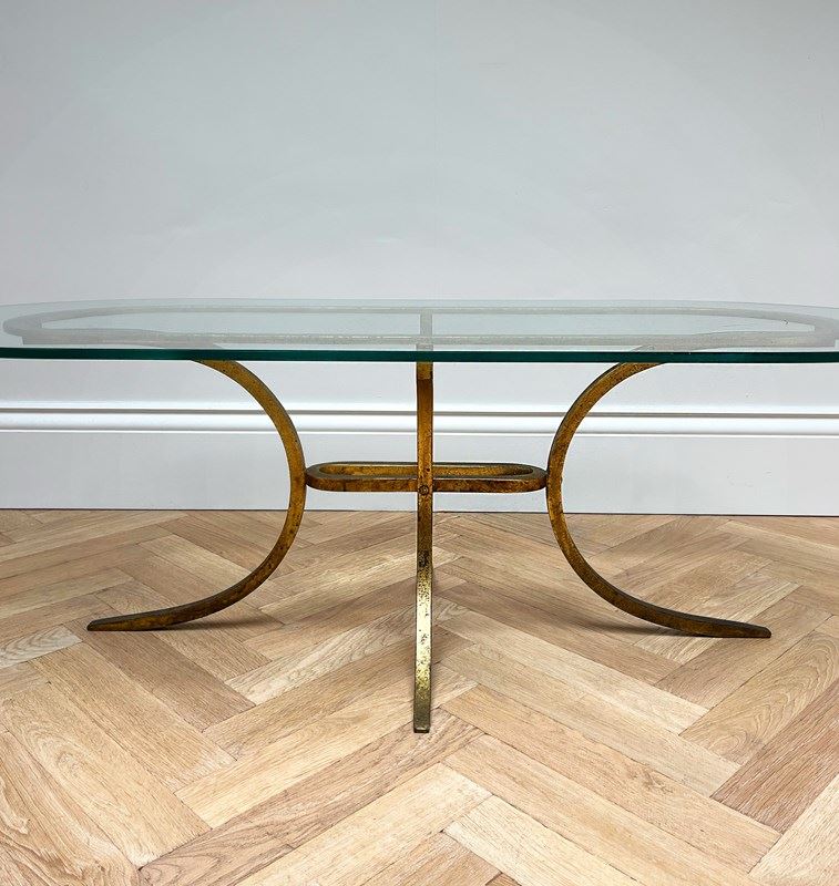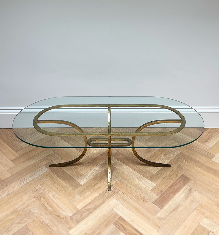 A Glass Coffee Table with Gilded Base