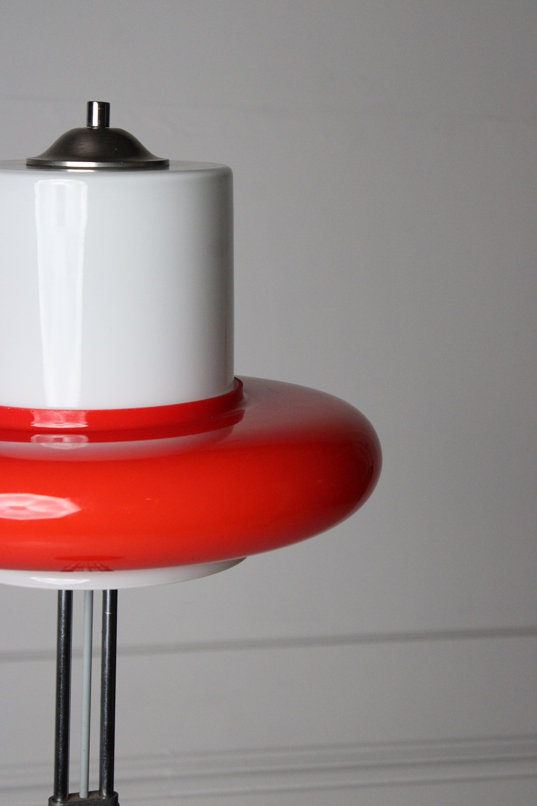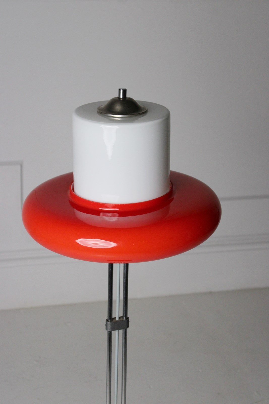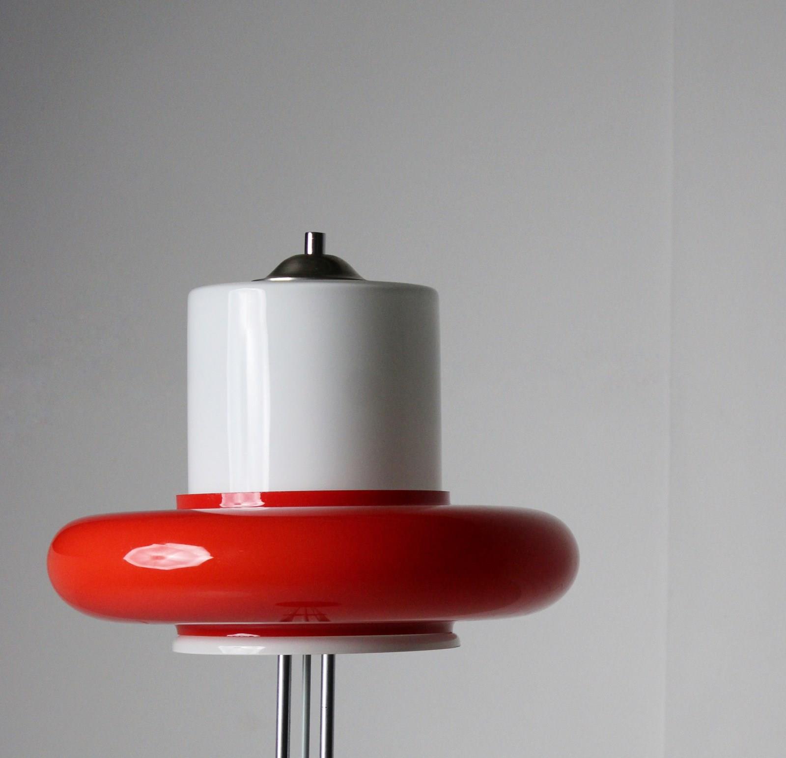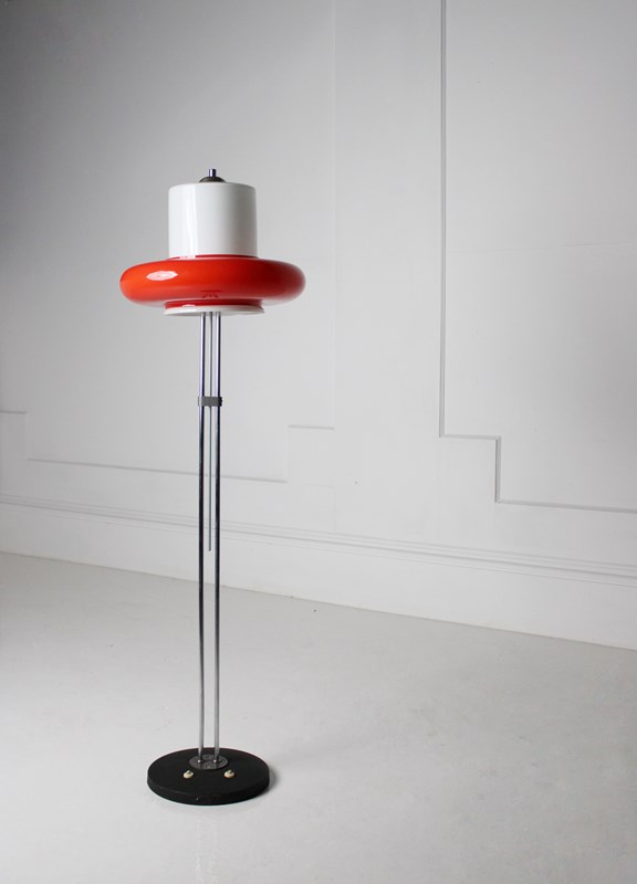 A remarkable opaline and red glass floor lamp, made in Czechoslovakia c.1960. H:125cm Dia:40cm The light is supplied re-wired and ready for use.
