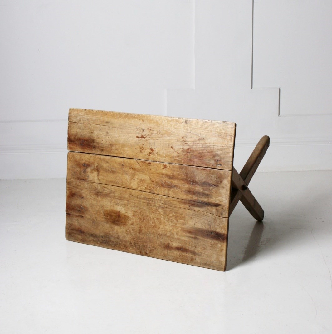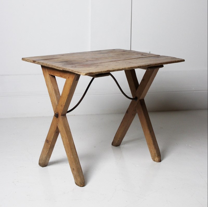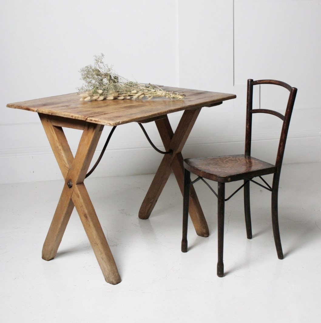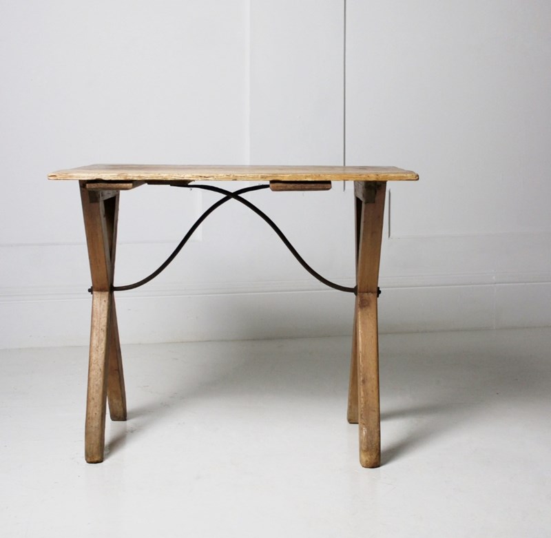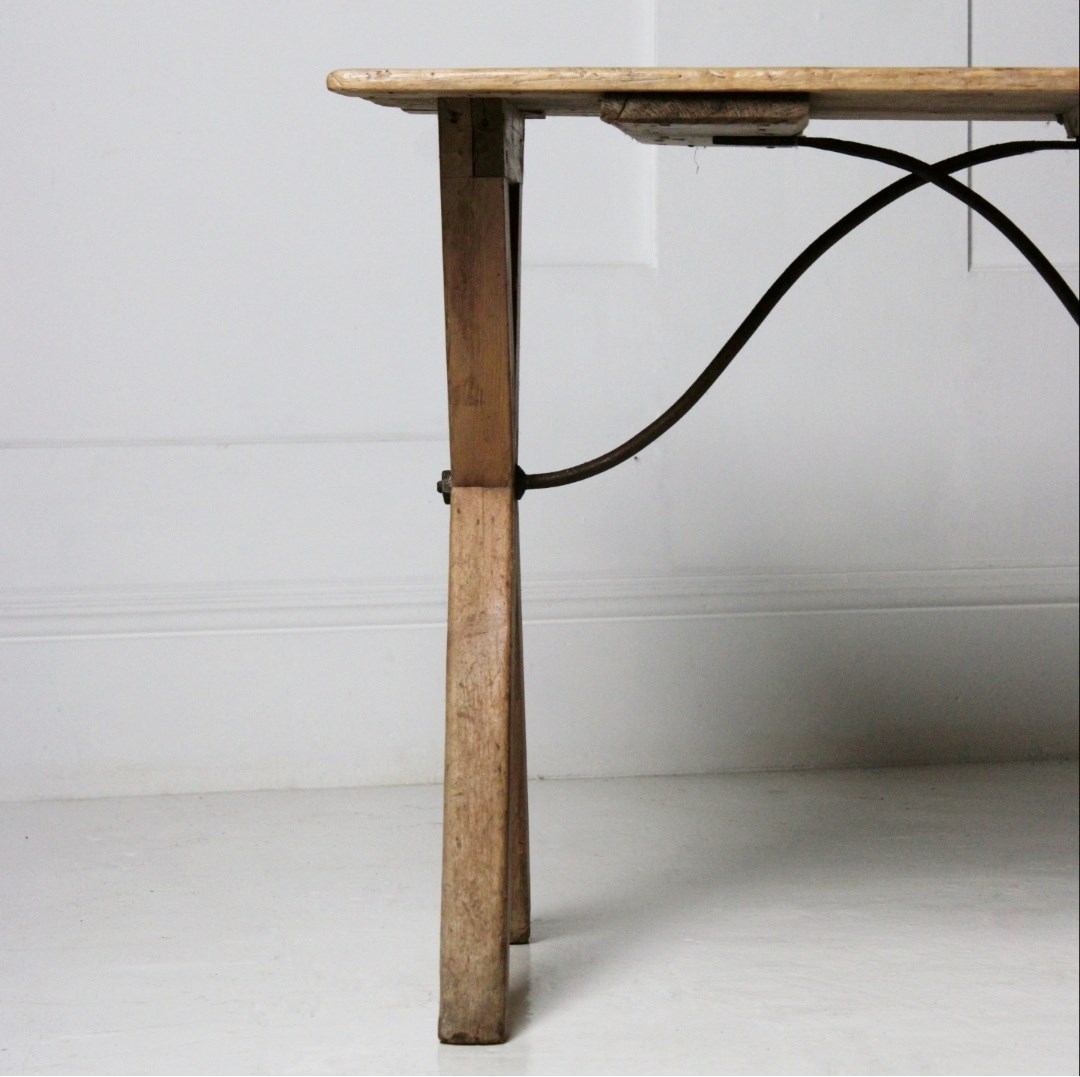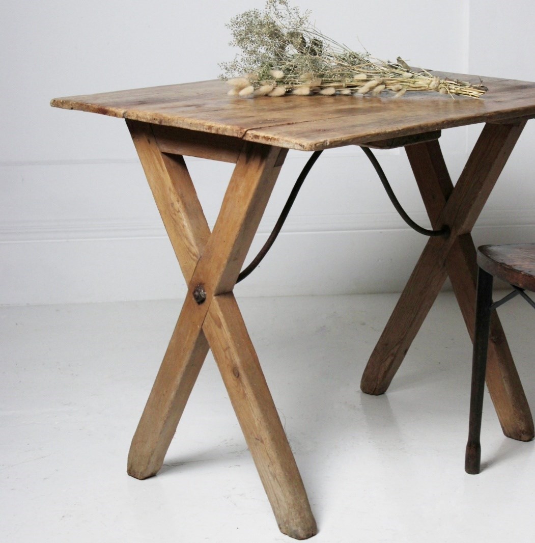 19Th C Scrubbed Pine X-Frame Tavern Table