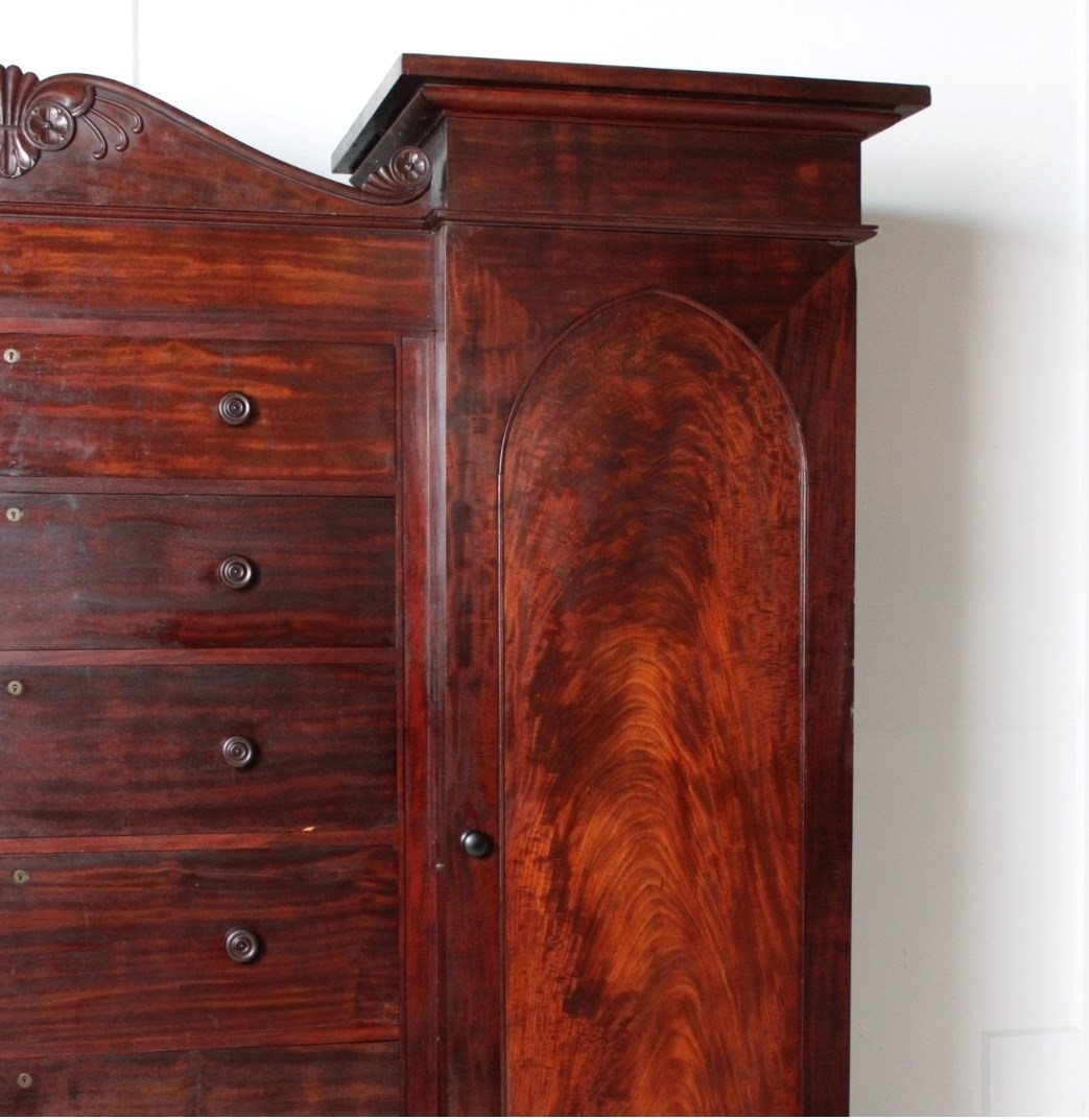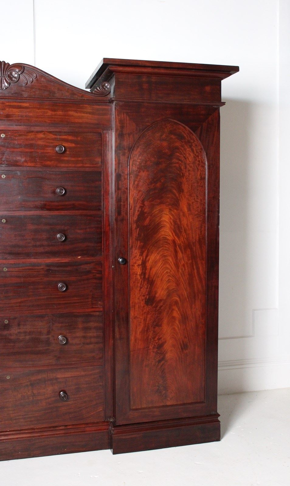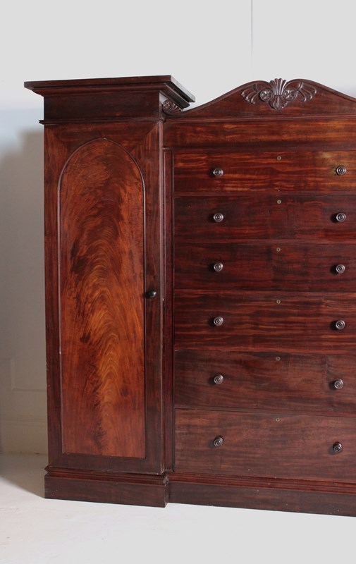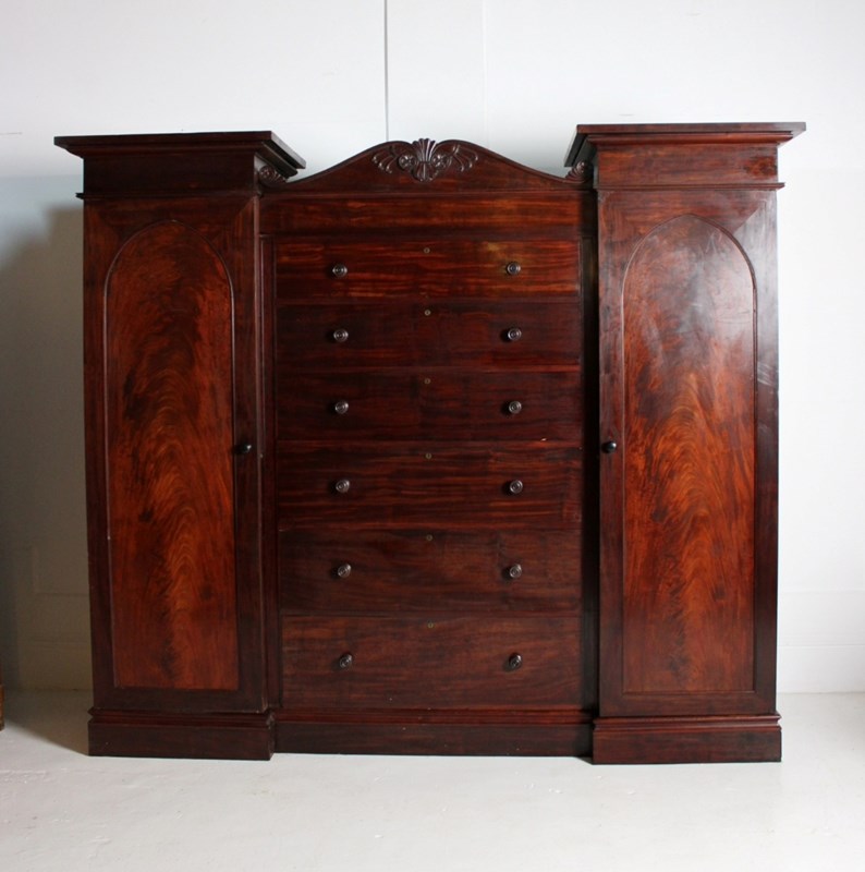 A mid 19th century compactium in Mahogany, consisting of six drawers to its central section, flanked by two tall hanging cupboards.