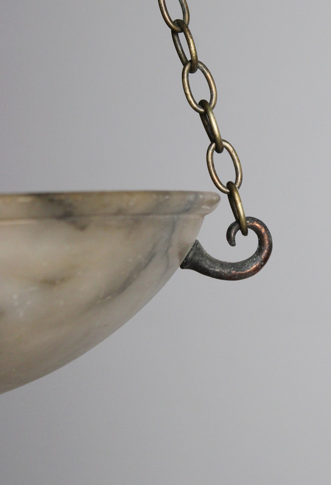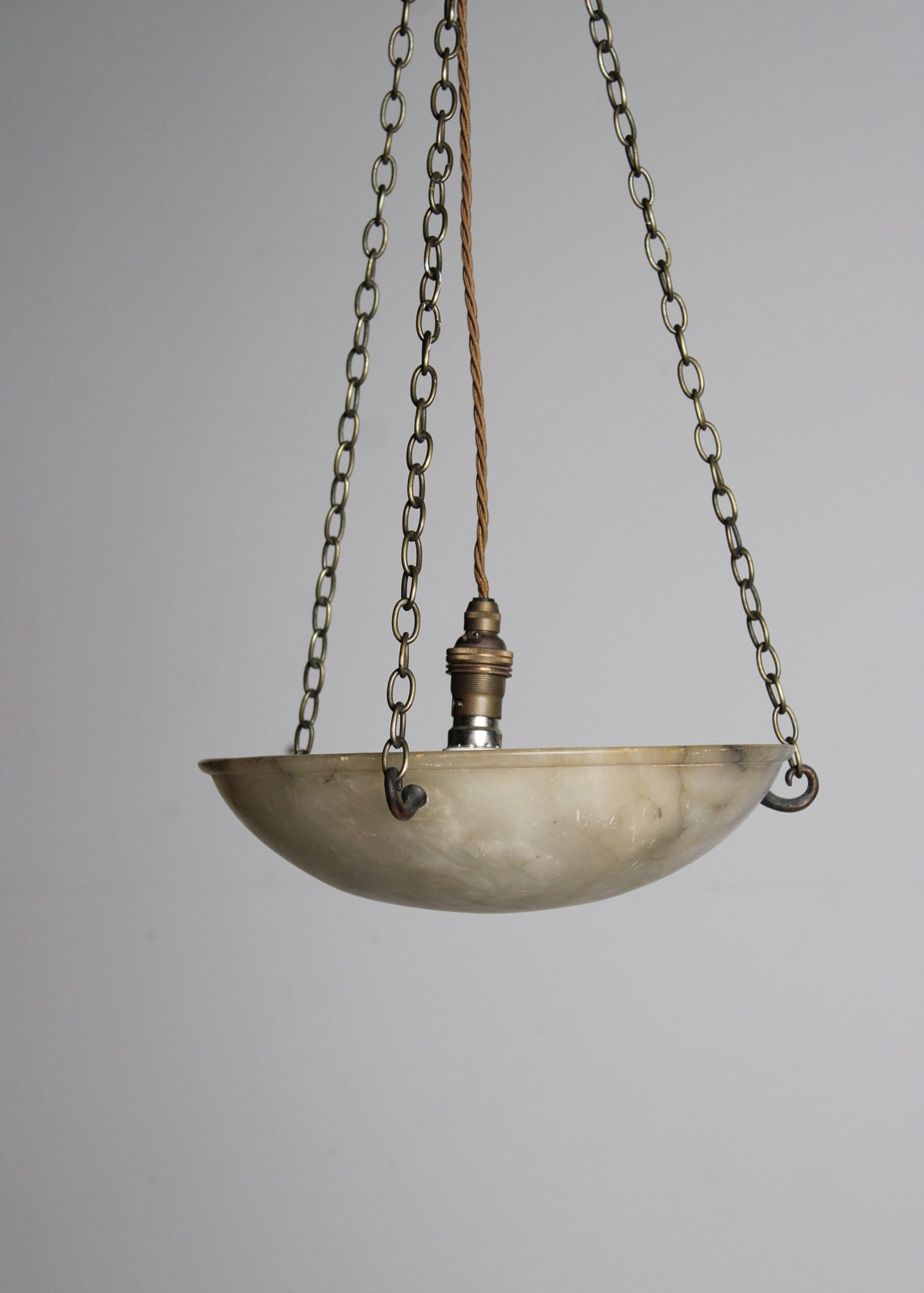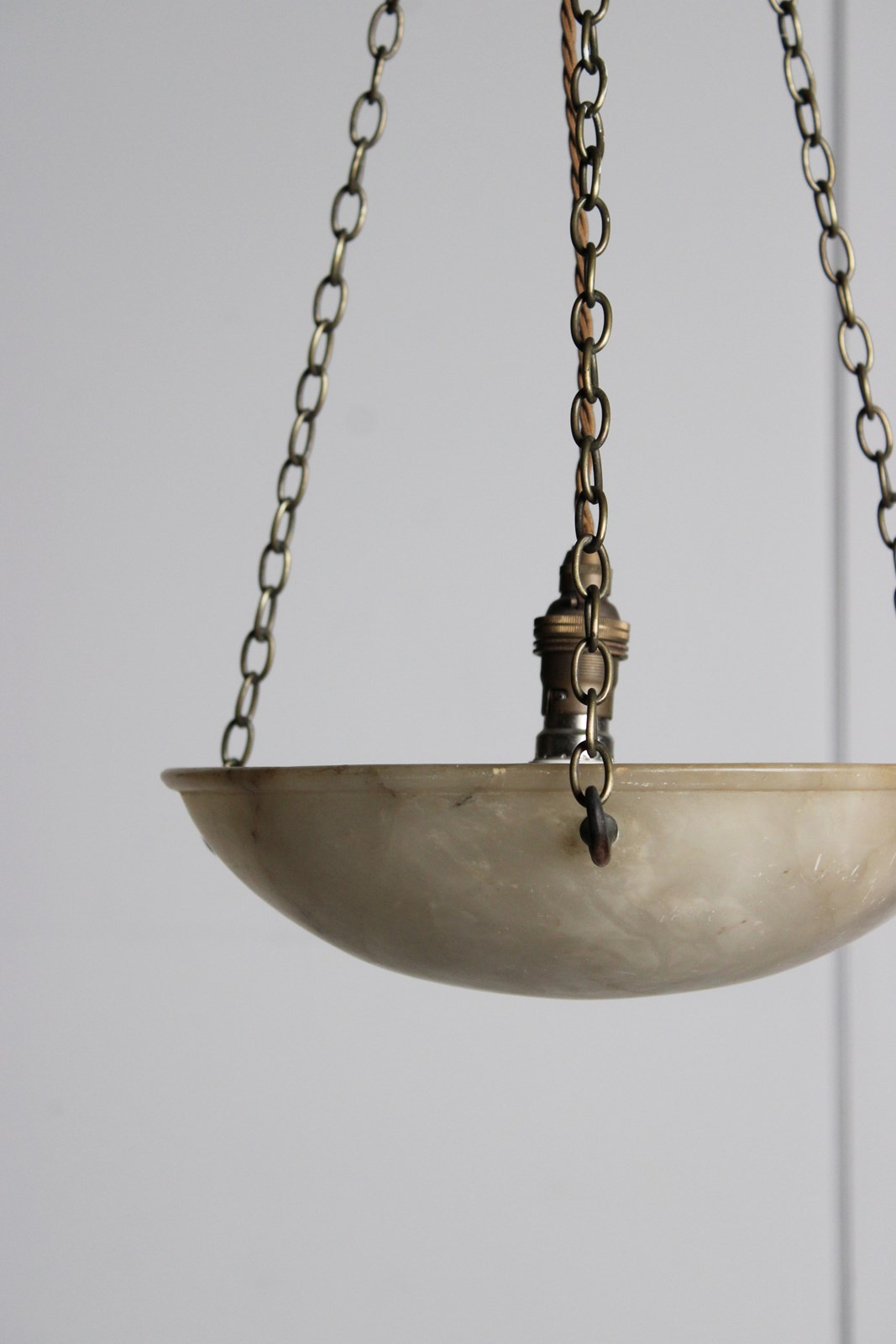An early 20th century alabaster plafonnier pendant light in a light grey.
