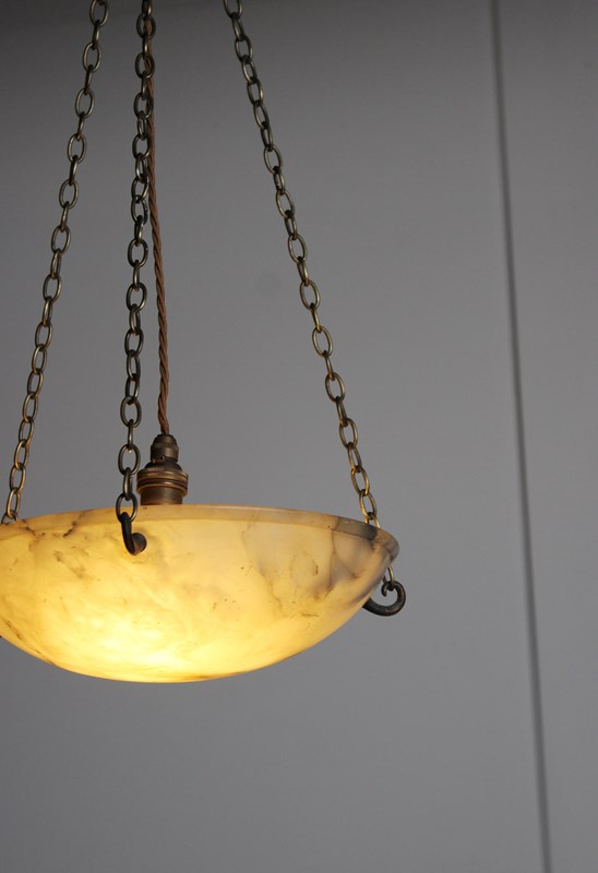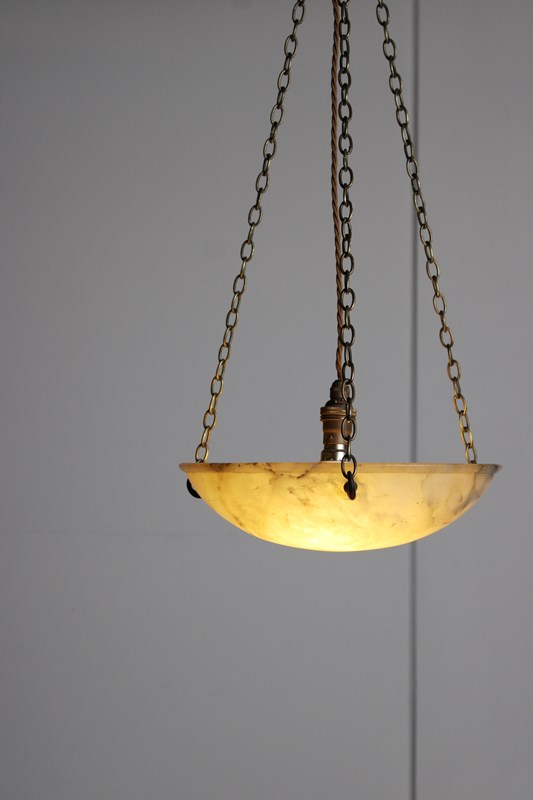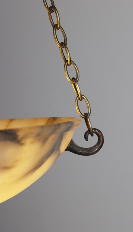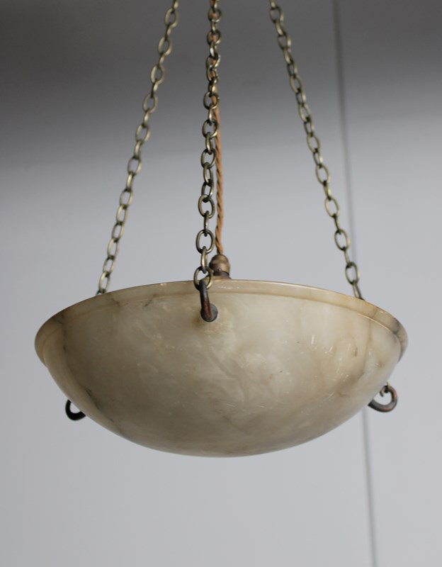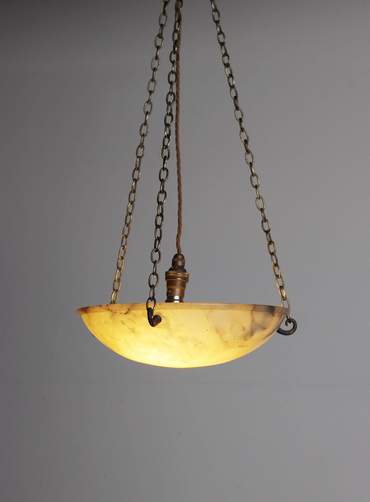 An early 20th century alabaster plafonnier pendant light in a light grey.