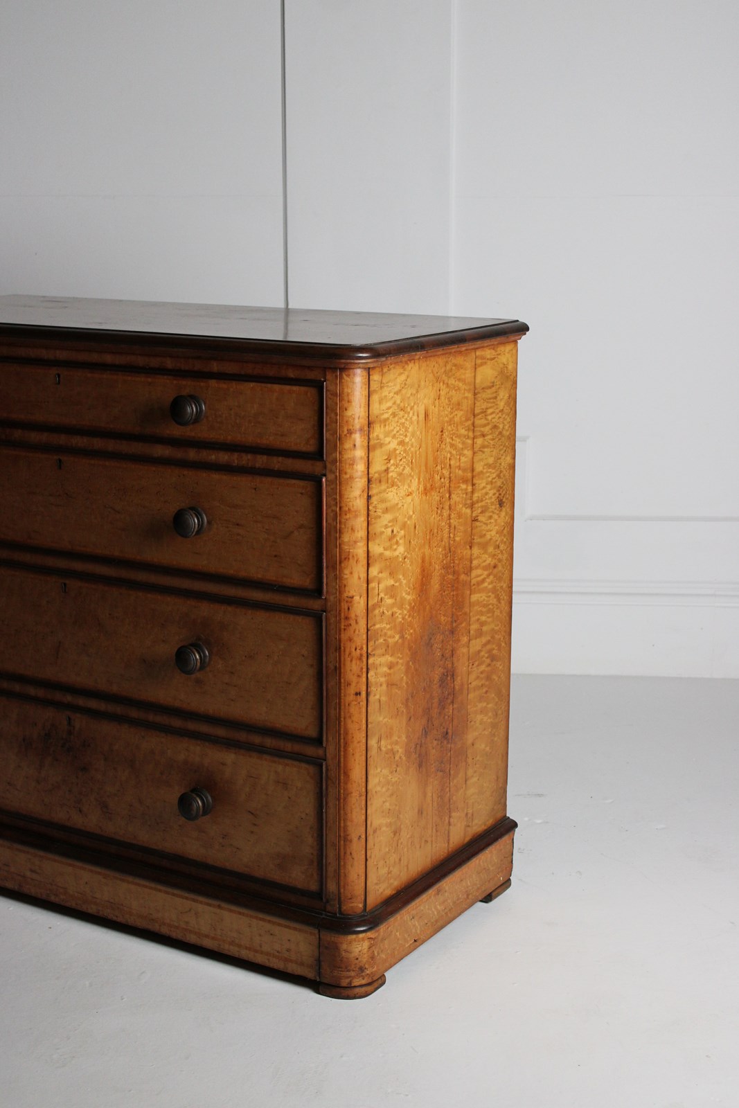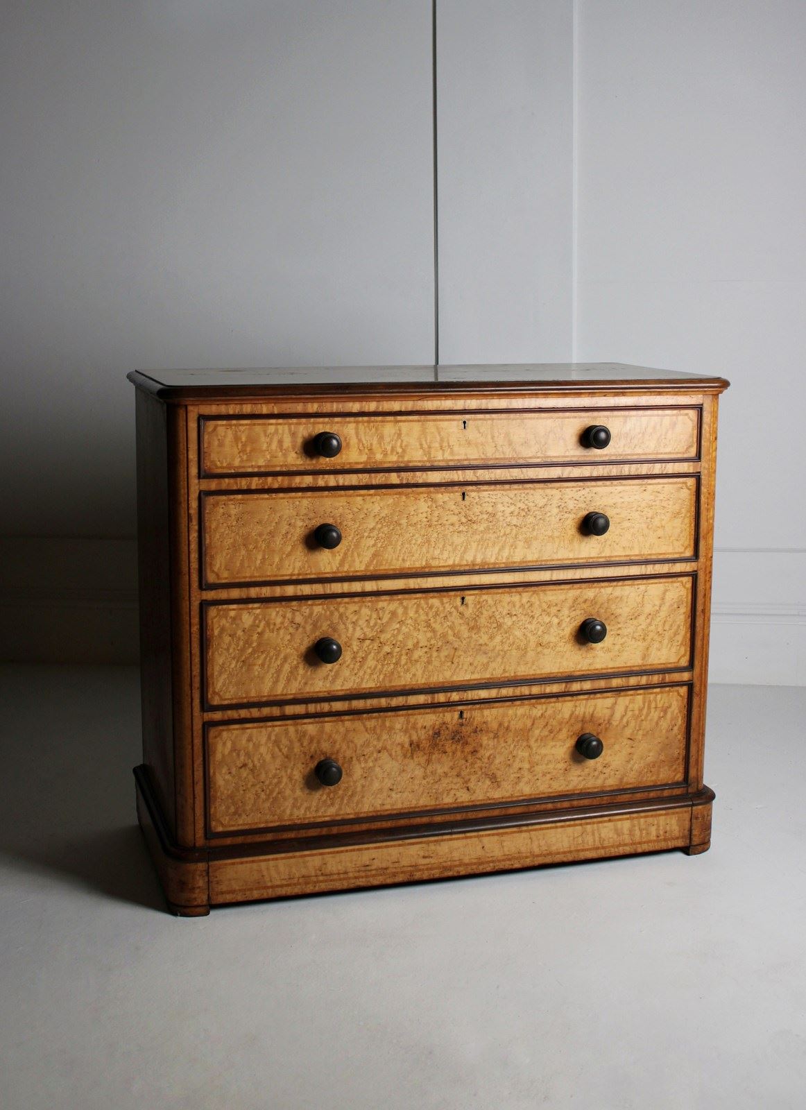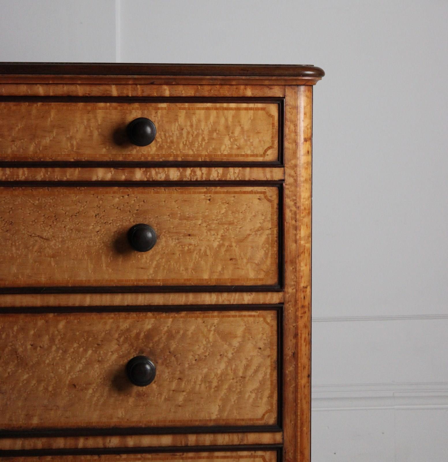 A good quality 19th century birdseye Maple graduated chest of drawers, with fine inlaid crossbanded detail to its drawer faces and top.