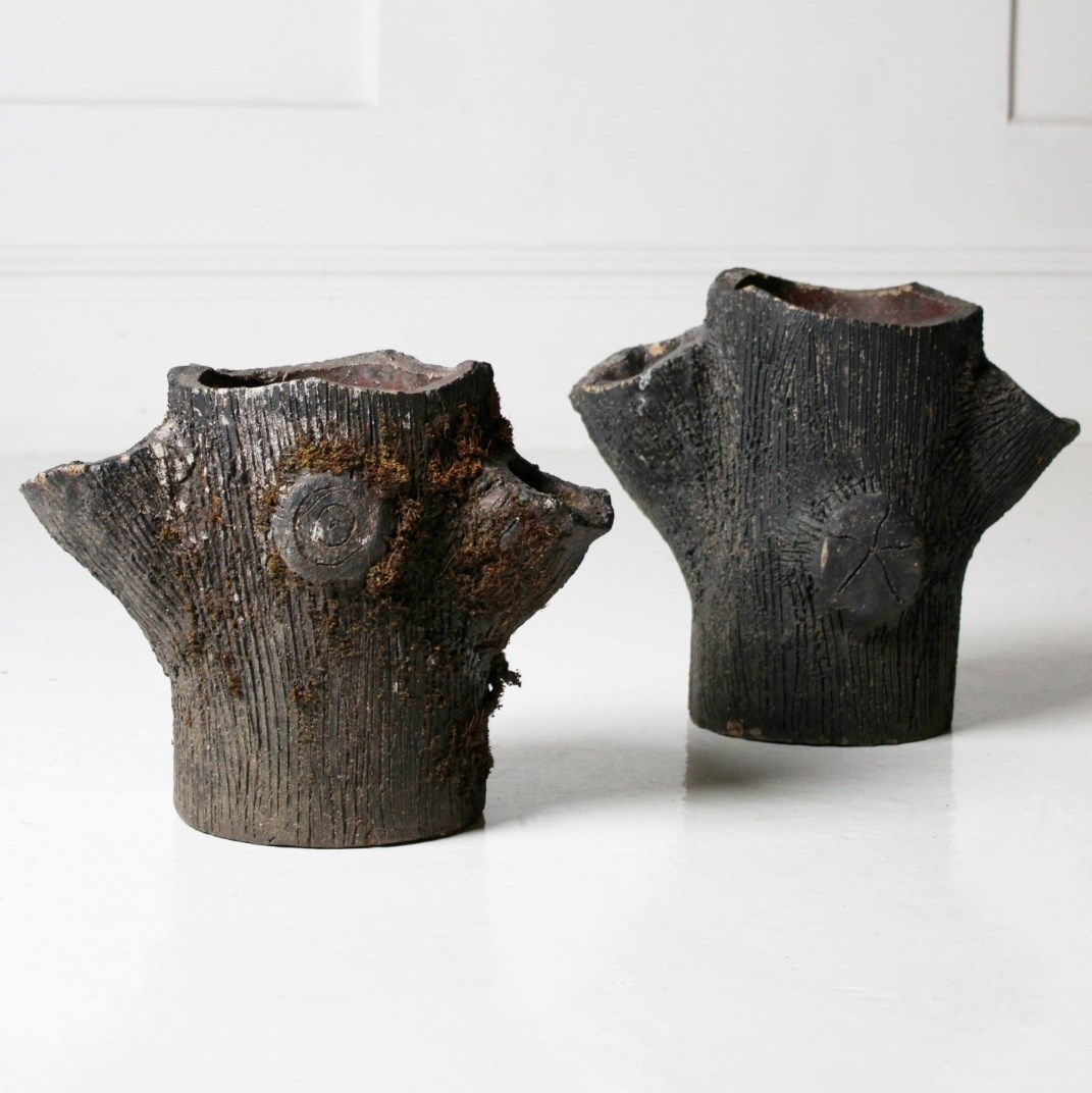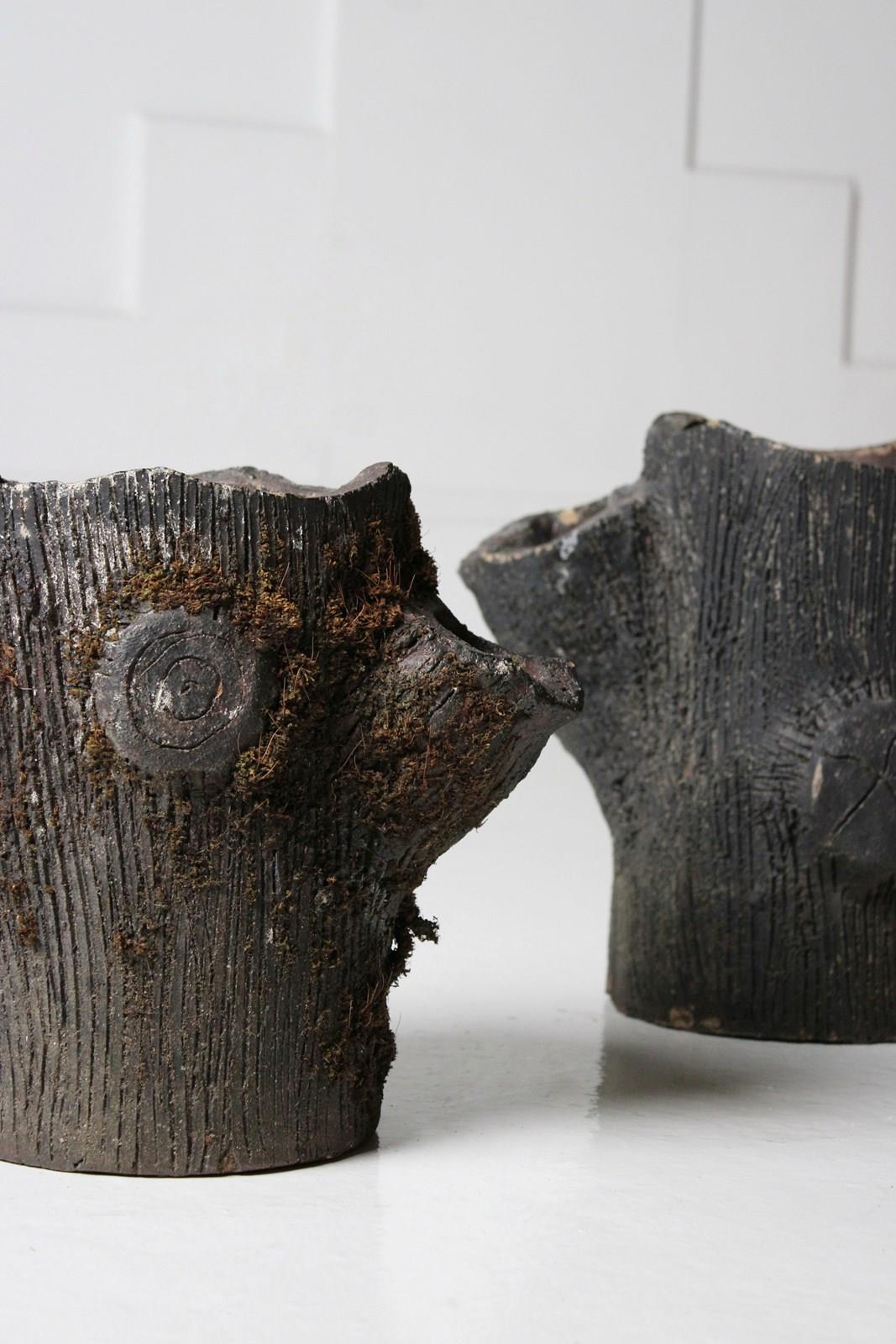 Faux Bois Salt-Glazed Planters