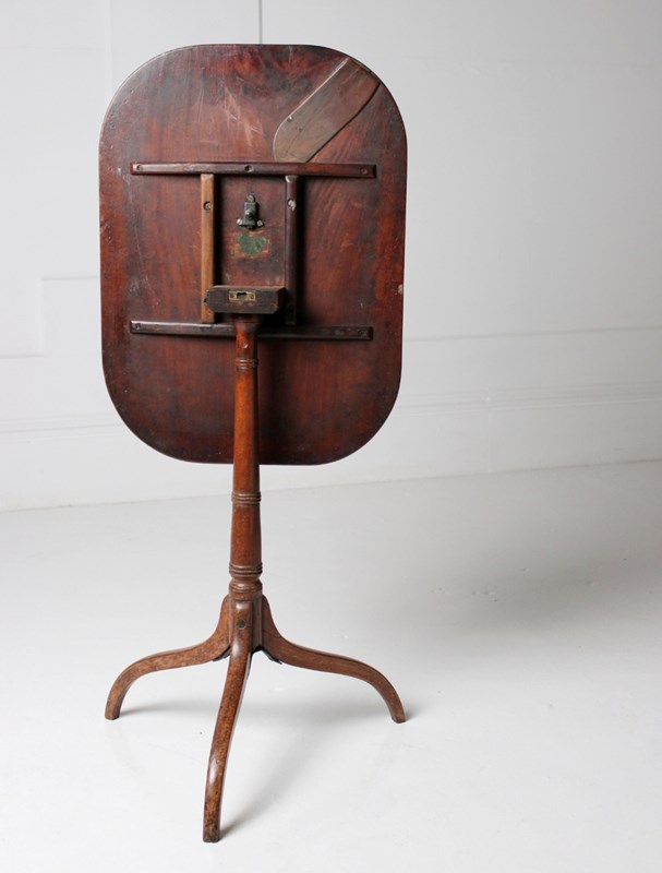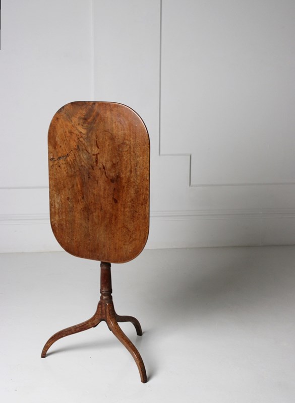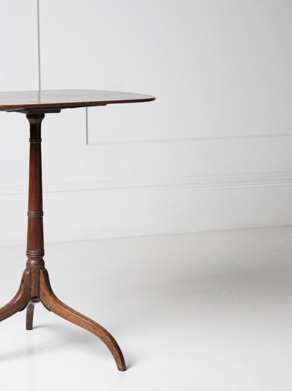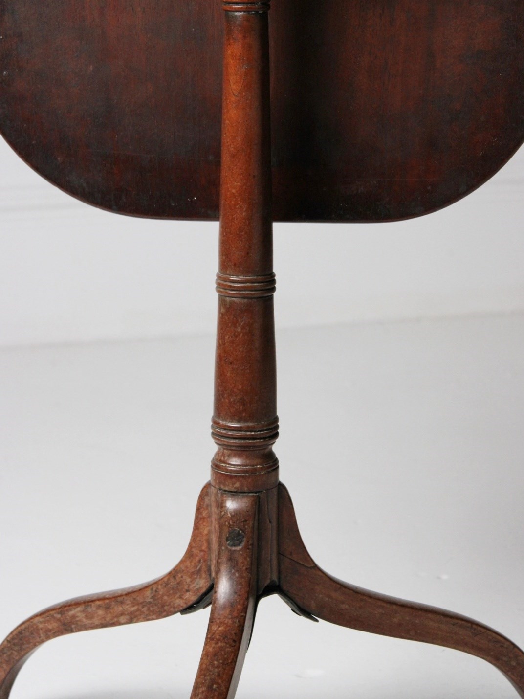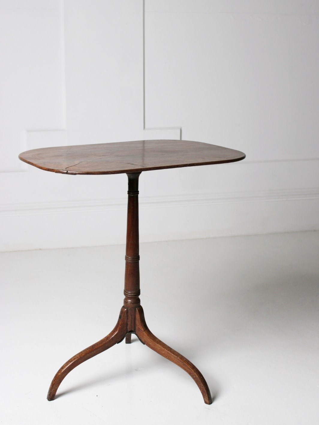 A George III wine table with a remarkably slender top, resting on a turned tapering base with exaggerated sweeping legs.
