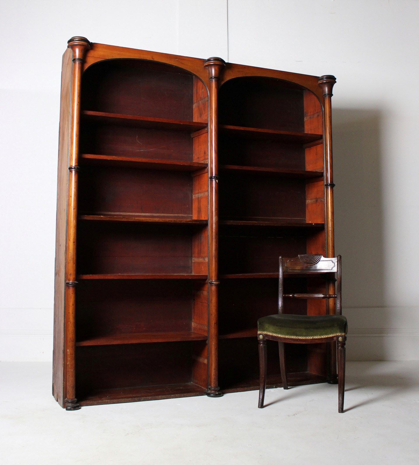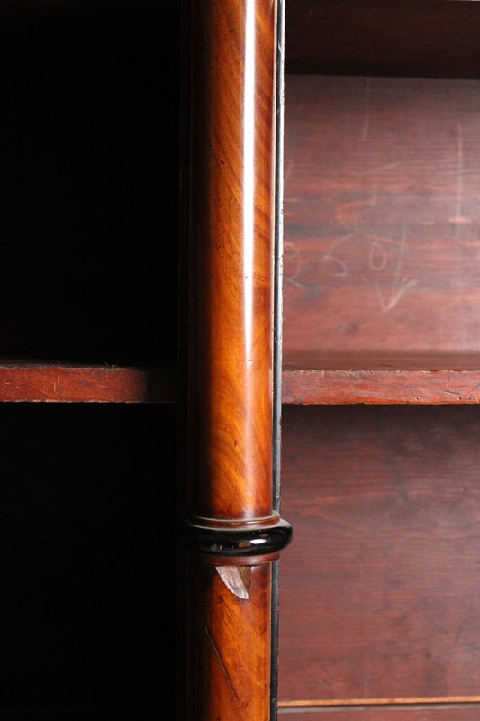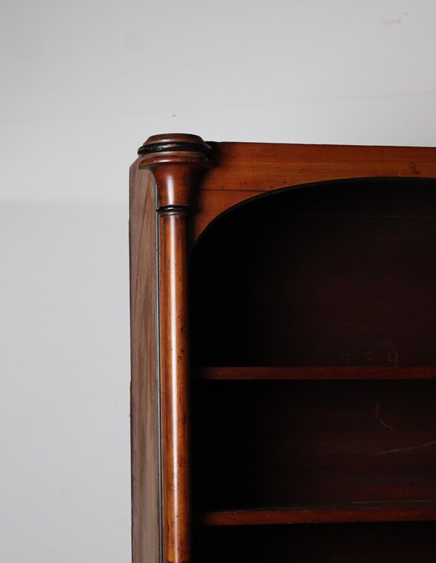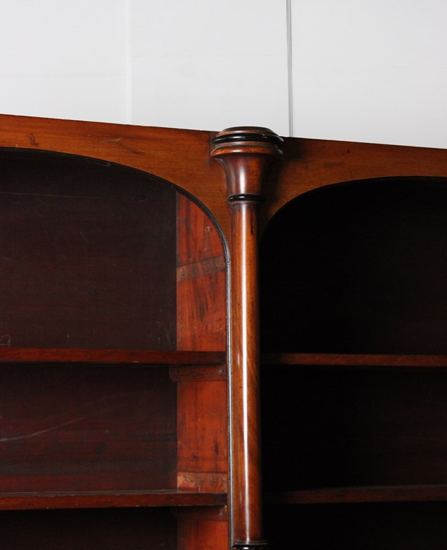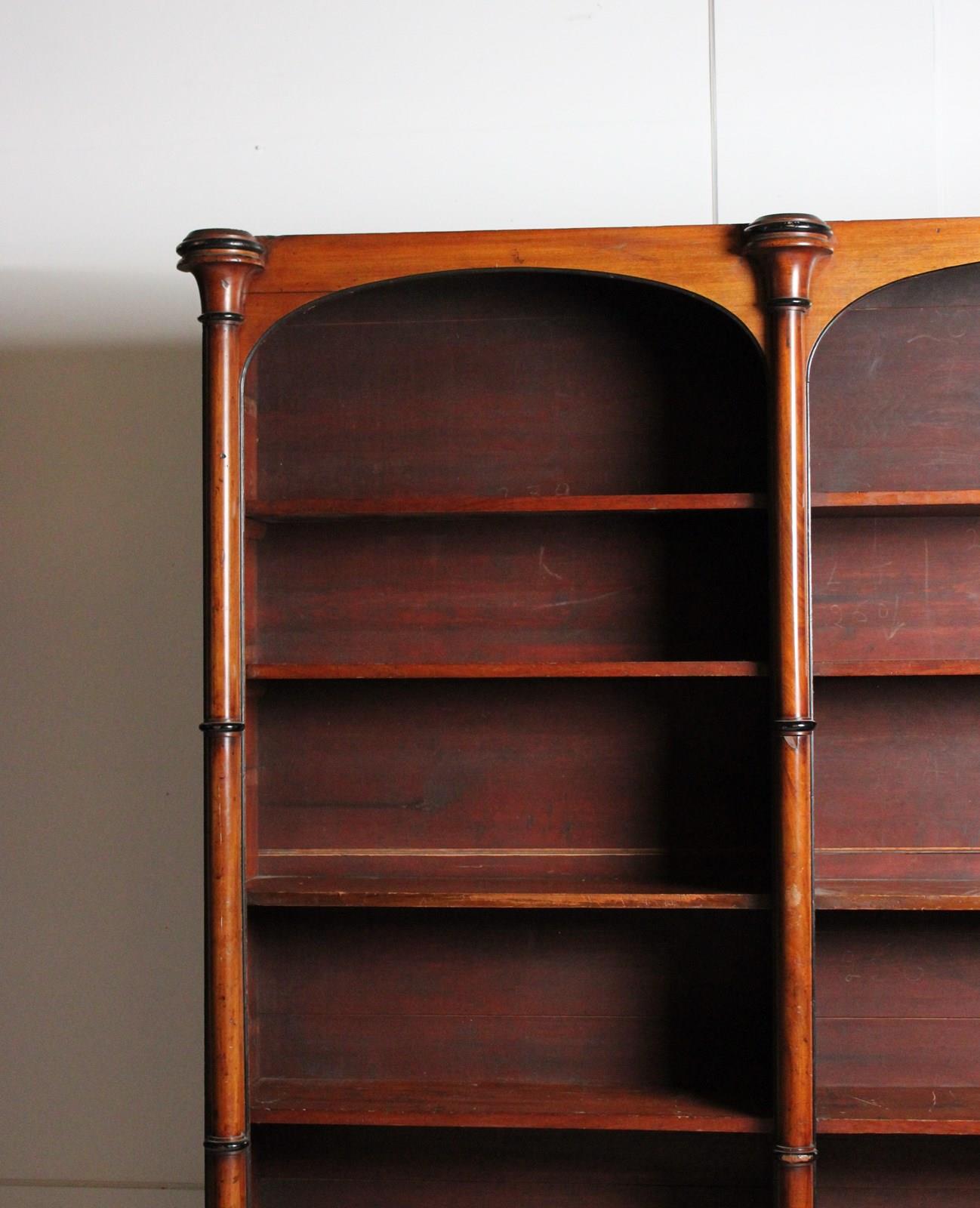 A large 19th century open bookcase in Mahogany, embellished with turned columns.