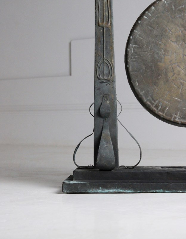 Large Arts & Crafts Verdigris Copper Dinner Gong
