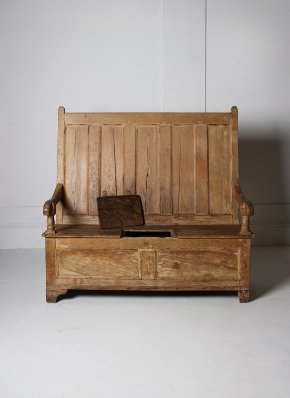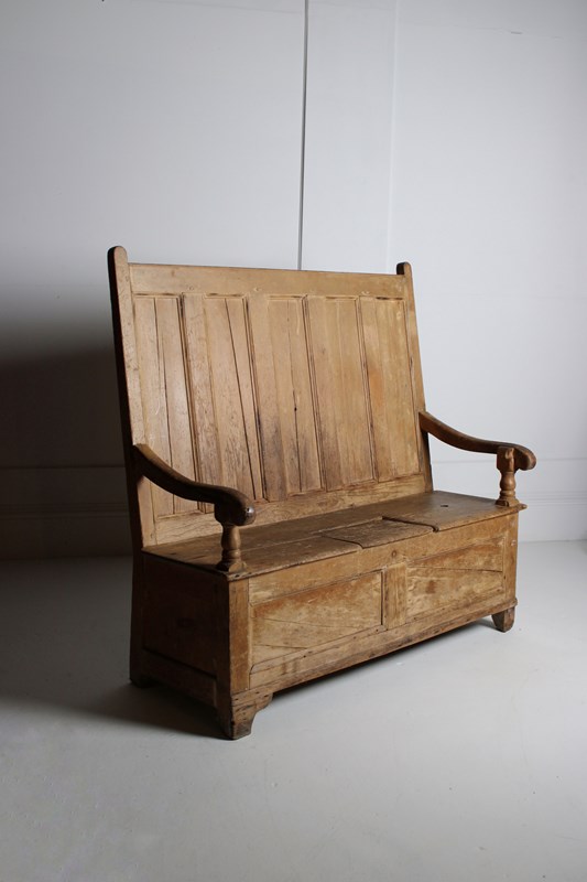 Large Pine Box Settle 19Th Century