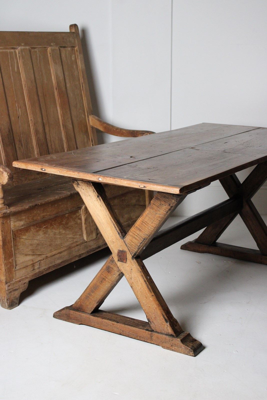 Large X-Frame Farmhouse Table In Pine And Beech