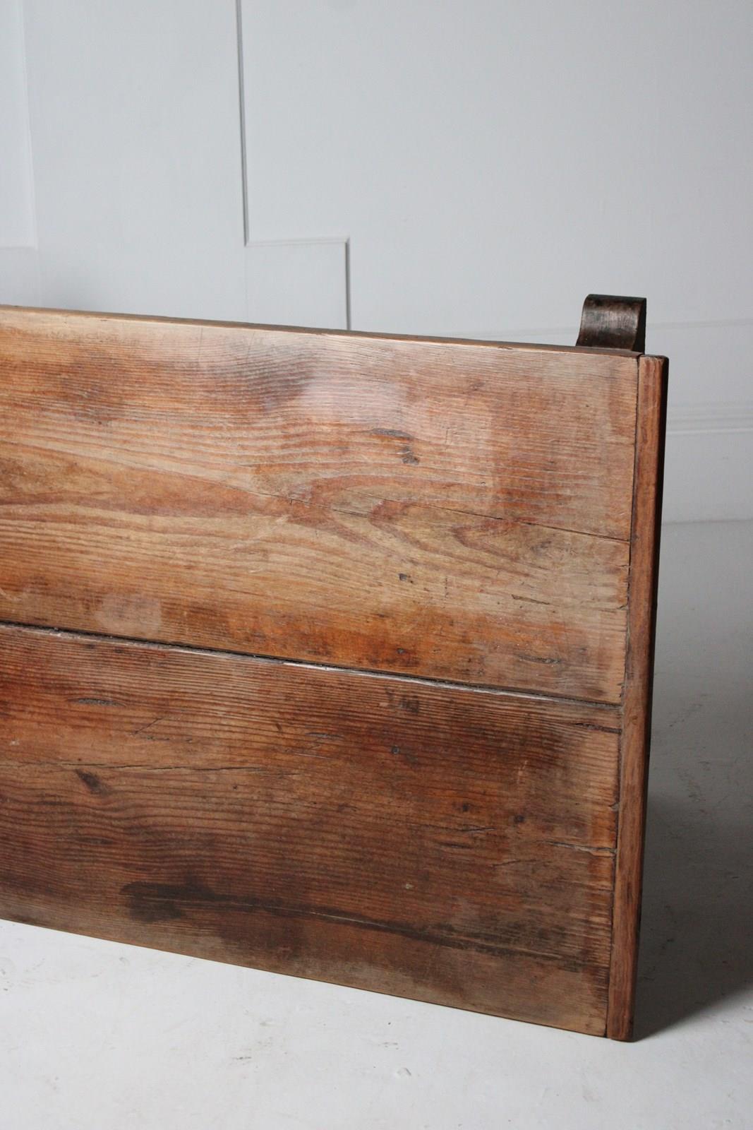 A large19th century farmhouse table on a stop chamfered beech x-frame base with a two plank pine top, good wear and patination.