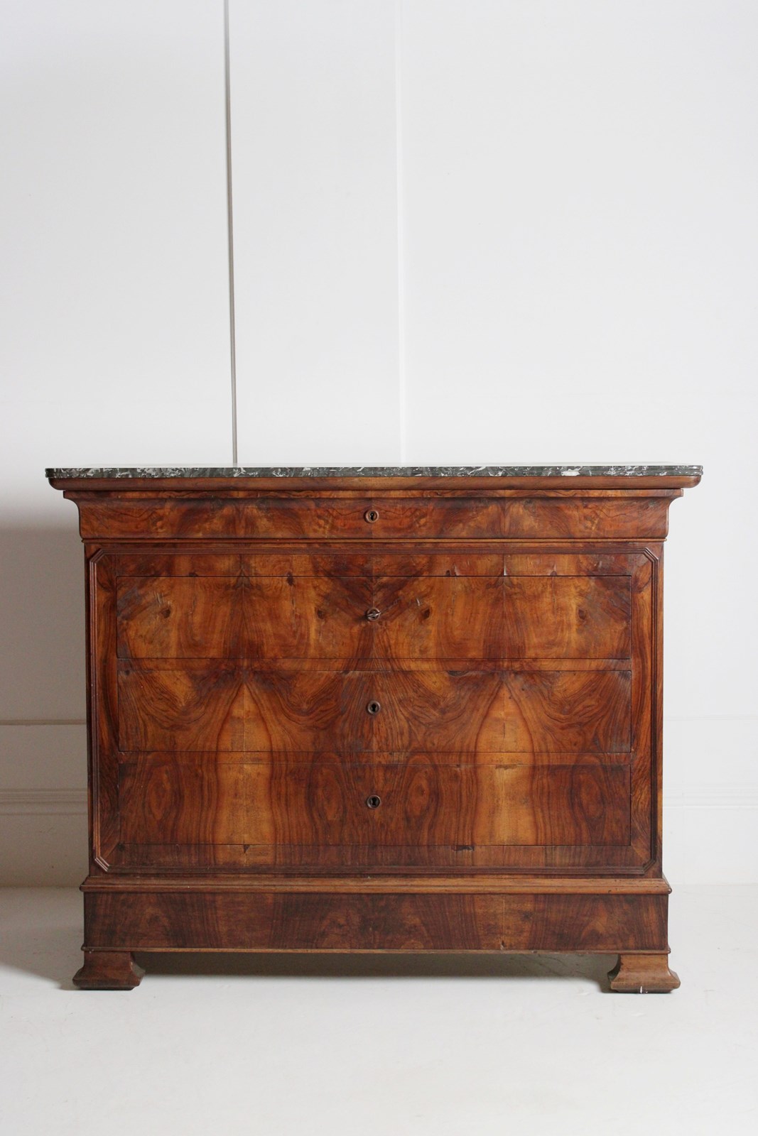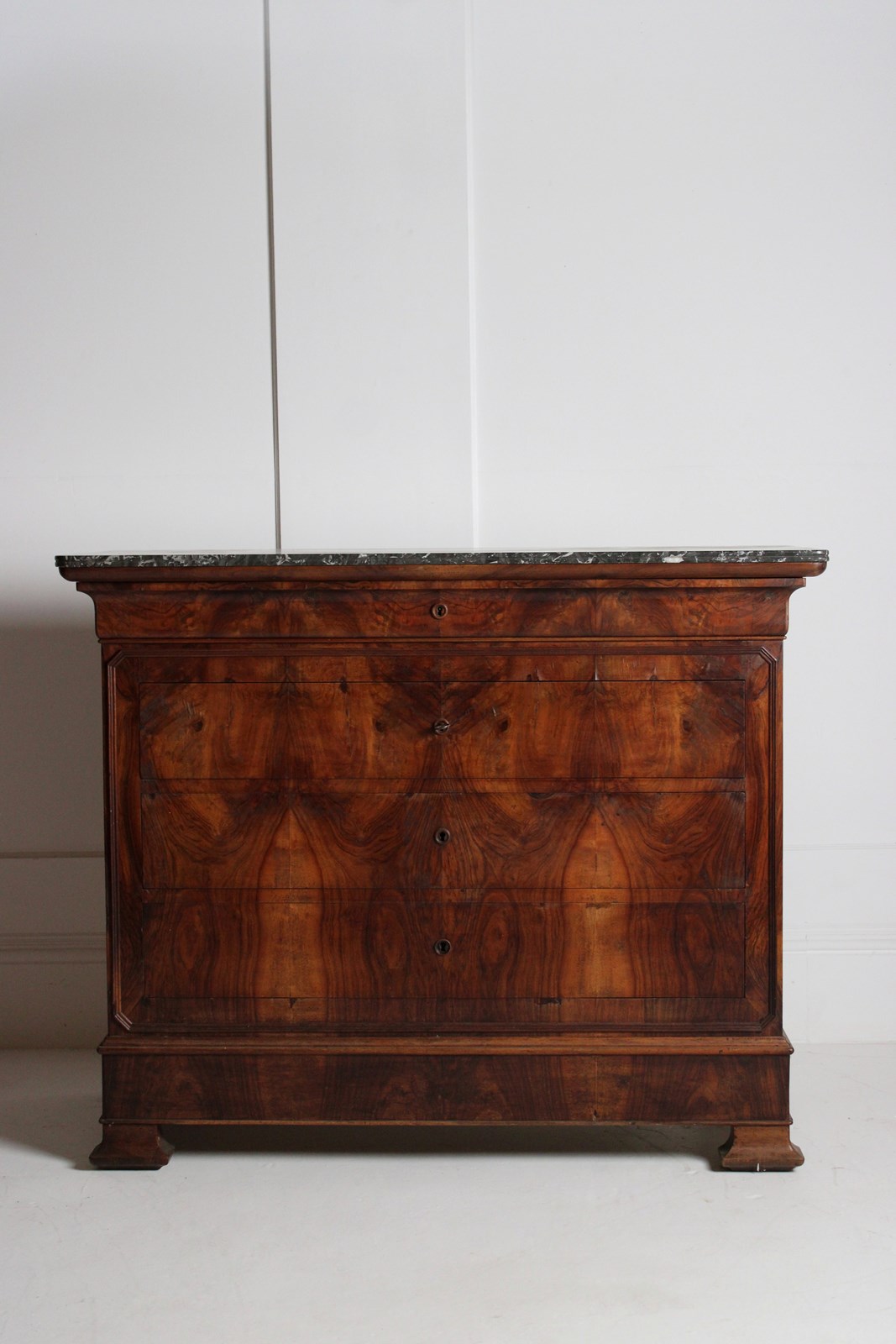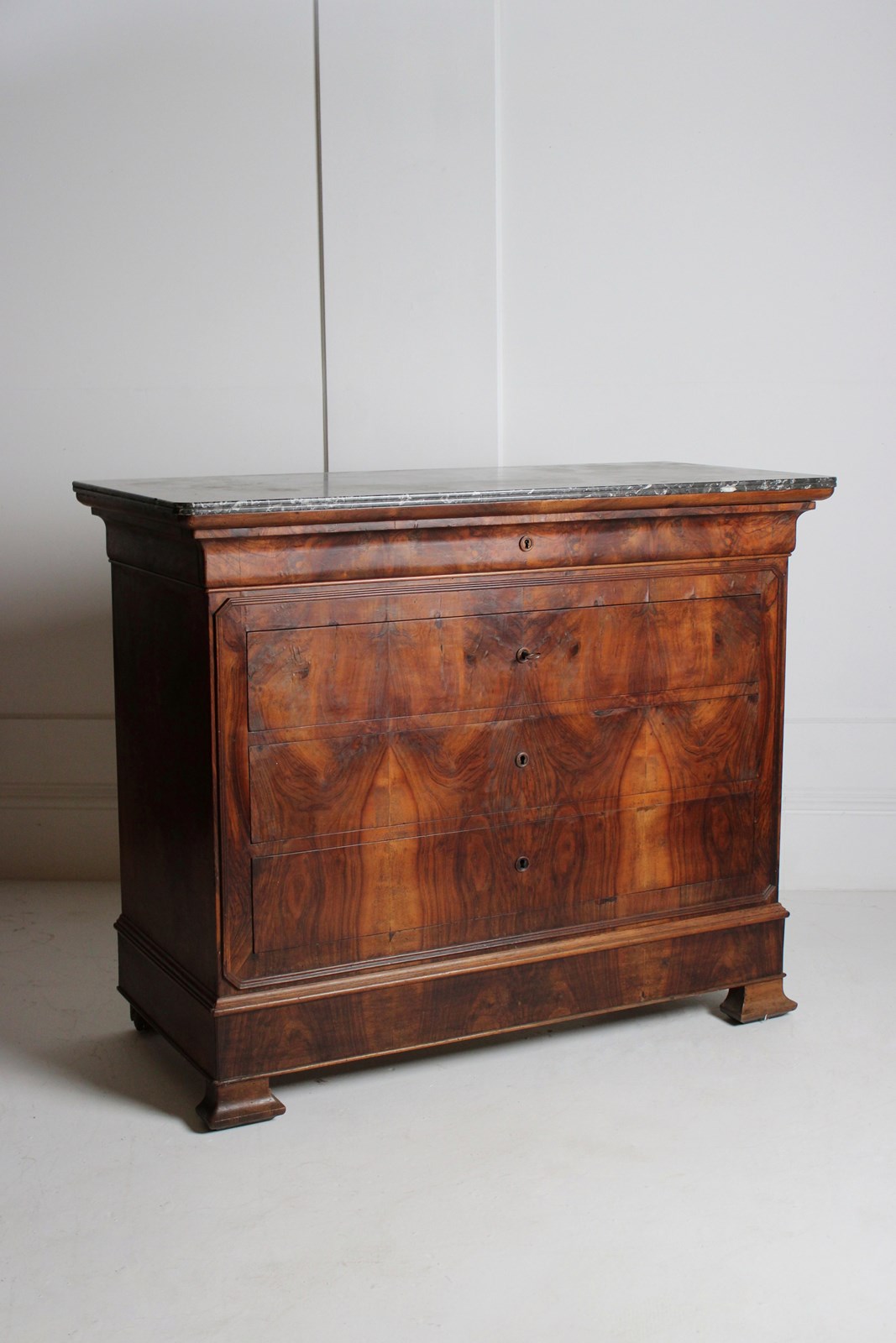 A well figured 19th century Louis Philippe walnut commode, retaining its original key.