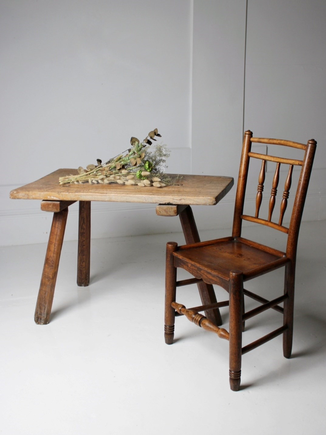 Welsh Primitive Three Legged Table In Elm