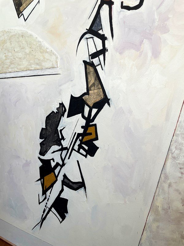 Oil and collage on canvas, titled, monogrammed and dated April 00 to verso,