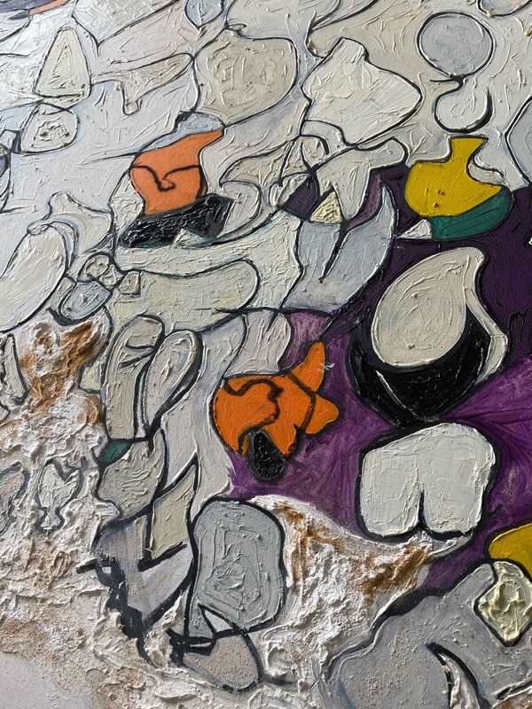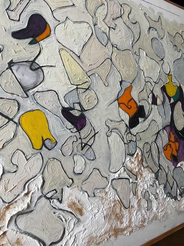 Peter Jackson was one of the last survivors from that generation of artists that studied at Corsham Court Art College in the 1950s, guided by prominent tutors including Peter Lanyon, William Scott, Adrian Heath, Peter Poterowski, Anthony Fry, Howard Hodgkin and Terry Frost. He’s main focus was abstract, experimenting with a range of materials and collage to create a trademark textural, almost relief surface to the canvas.