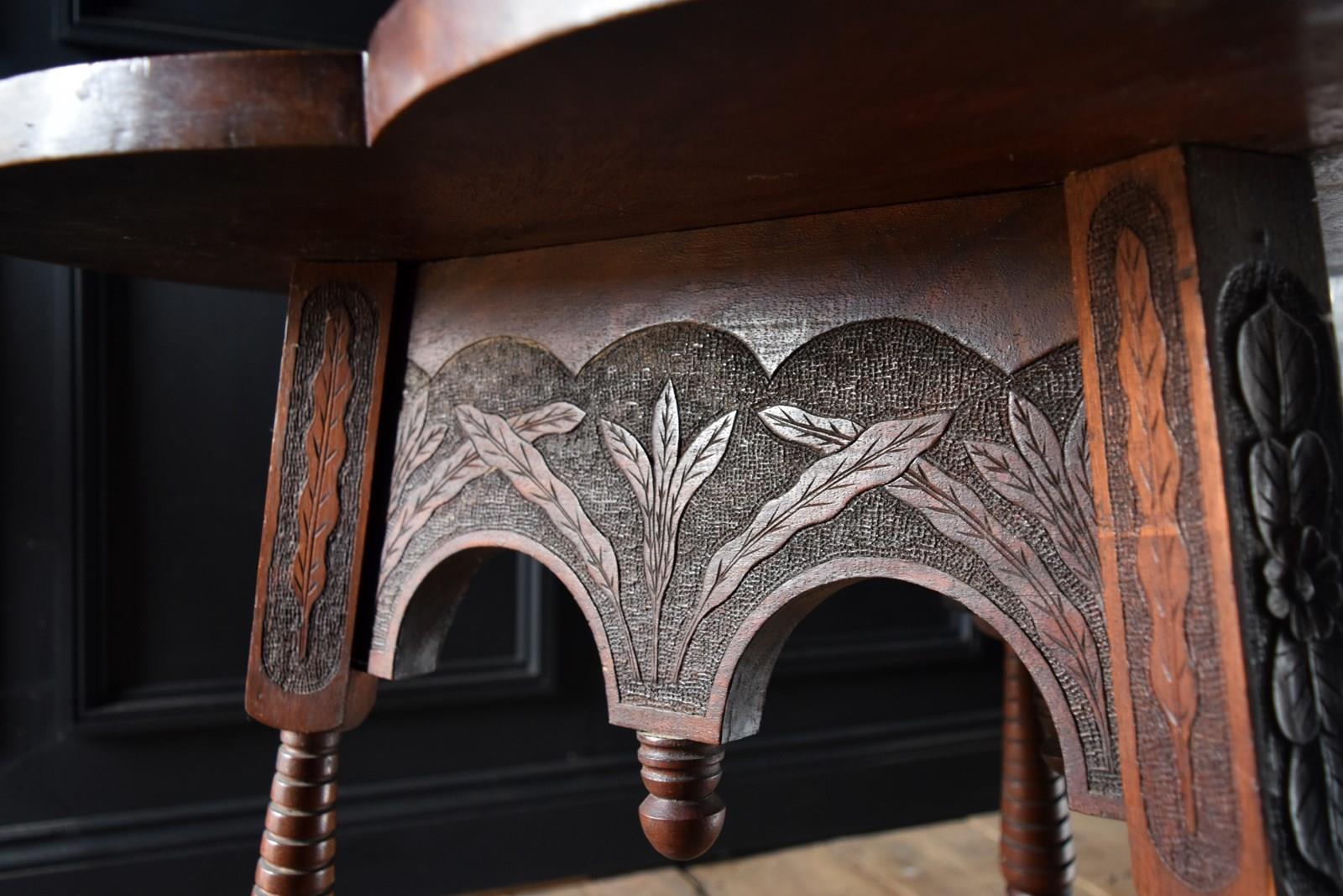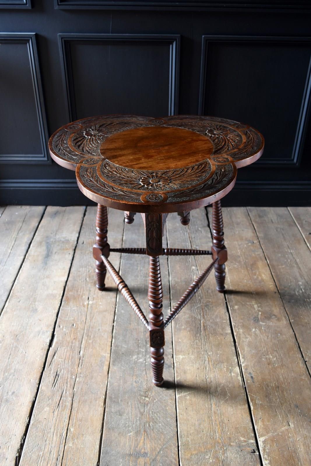 Extensively carved decoration throughout with leaved flower heads and Clovers within fine pokerwork.