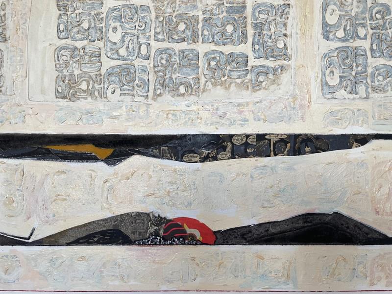 Peter Jackson was one of the last survivors from that generation of artists that studied at Corsham Court Art College in the 1950s, guided by prominent tutors including Peter Lanyon, William Scott, Adrian Heath, Peter Poterowski, Anthony Fry, Howard Hodgkin and Terry Frost. He’s main focus was abstract, experimenting with a range of materials and collage to create a trademark textural, almost relief surface to the canvas.