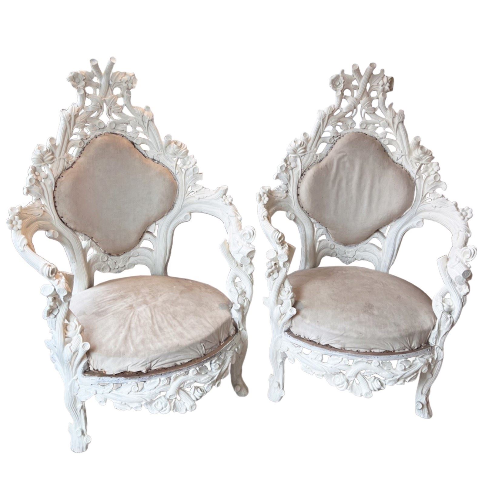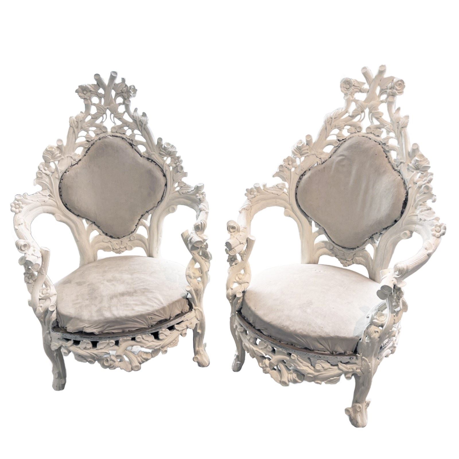 Highly decorative - this pair of naturalistic Italian carved wood armchairs certainly make a statement.