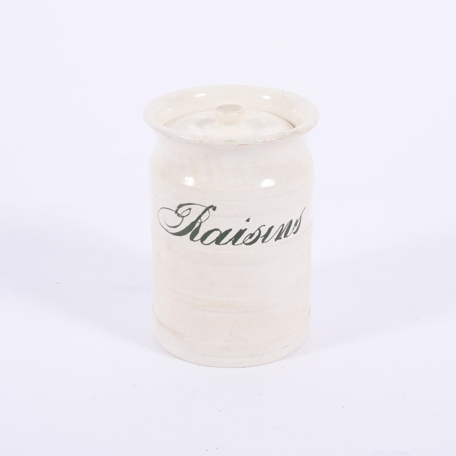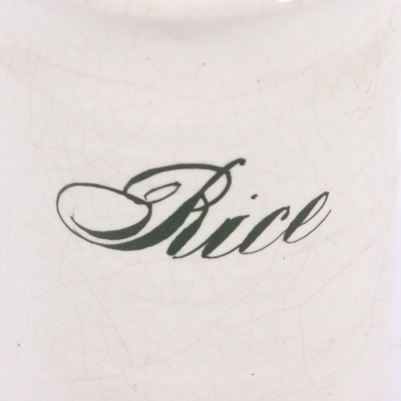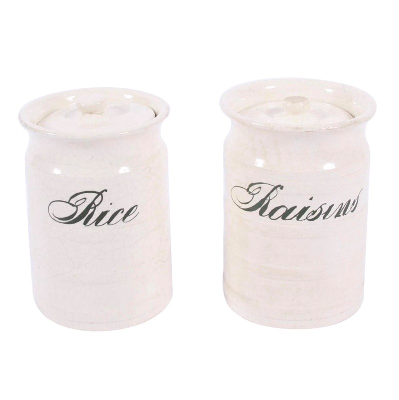 English Early 20Th Century Rice And Raisins Ceramic Jars With Green Writing