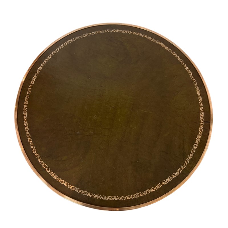 Our restorer has cleaned and polished the original dark green leather top. The tooling around the edge is in gold.