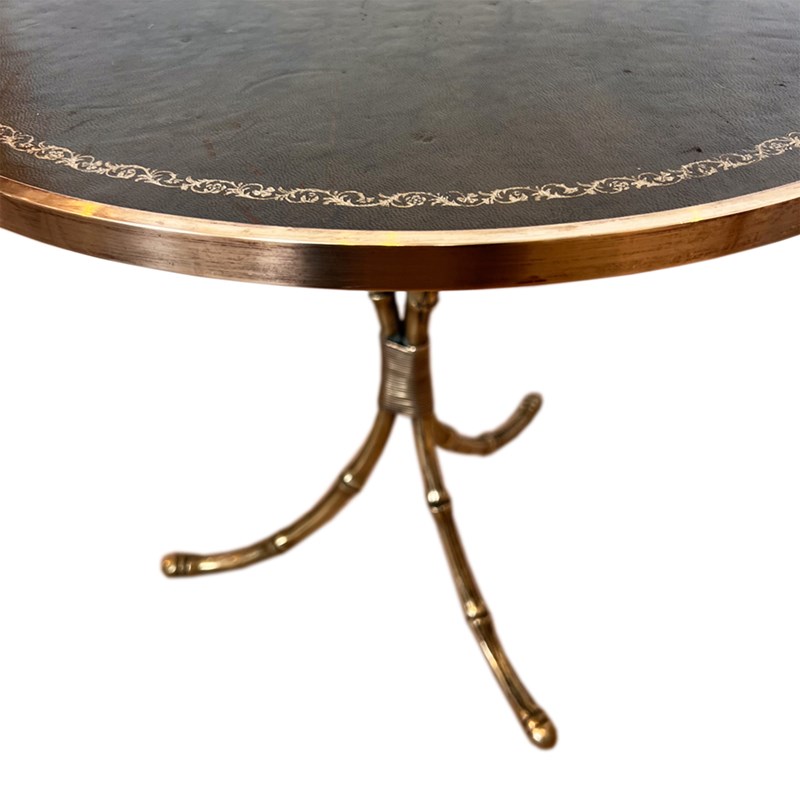 French Midcentury Faux Bamboo Brass Side Table With Tooled Leather Top
