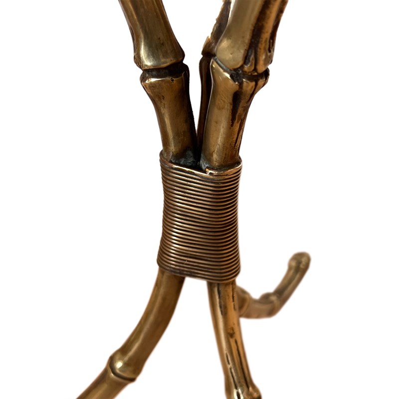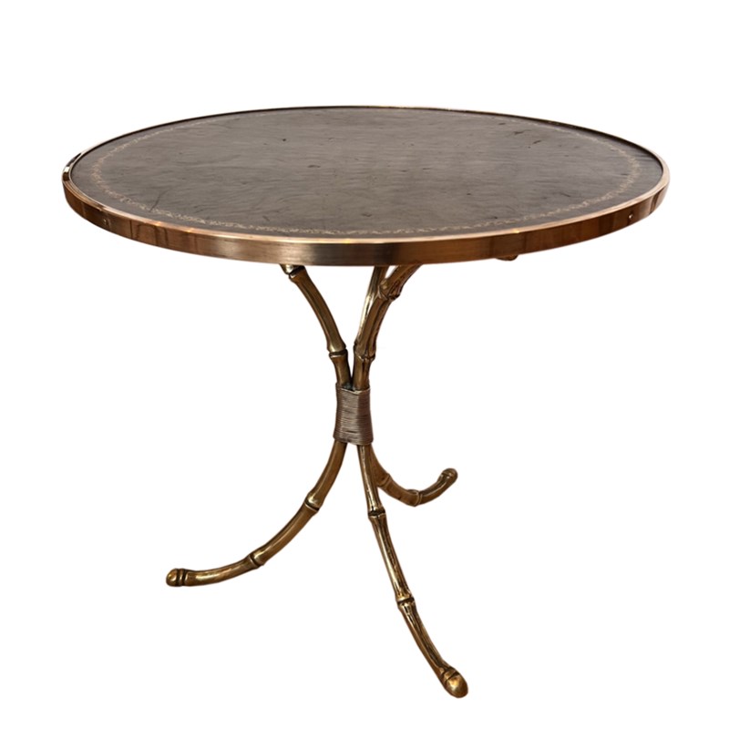 Brass faux bamboo with a tooled leather top. Lovely casting - please take a look at all our photographs to see the detail on the bamboo.