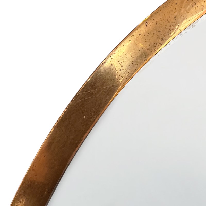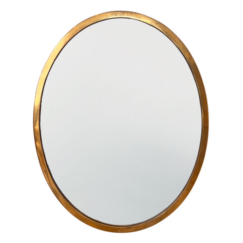 Midcentury Brass Framed Oval Mirror, French 1960S, Original Glass
