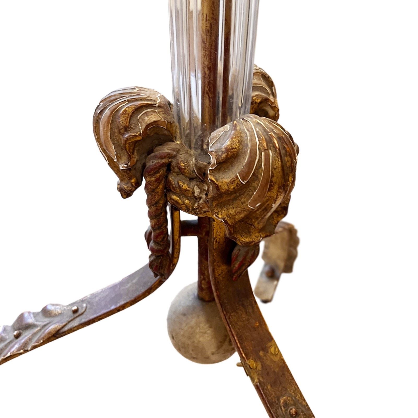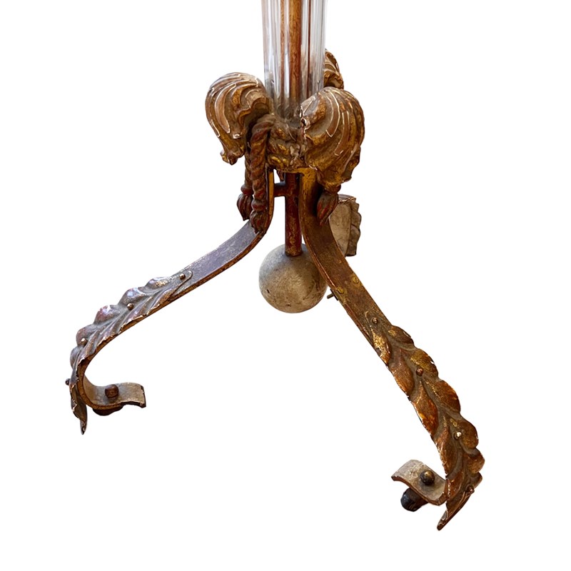 Midcentury French Glass, Giltwood & Tolewear Floor Lamp, Circa 1960