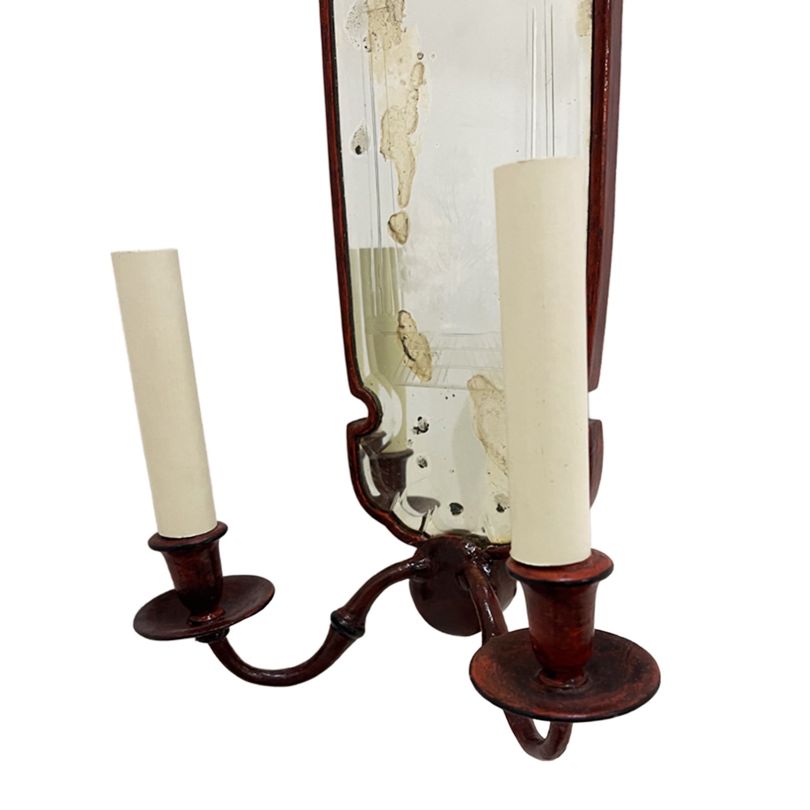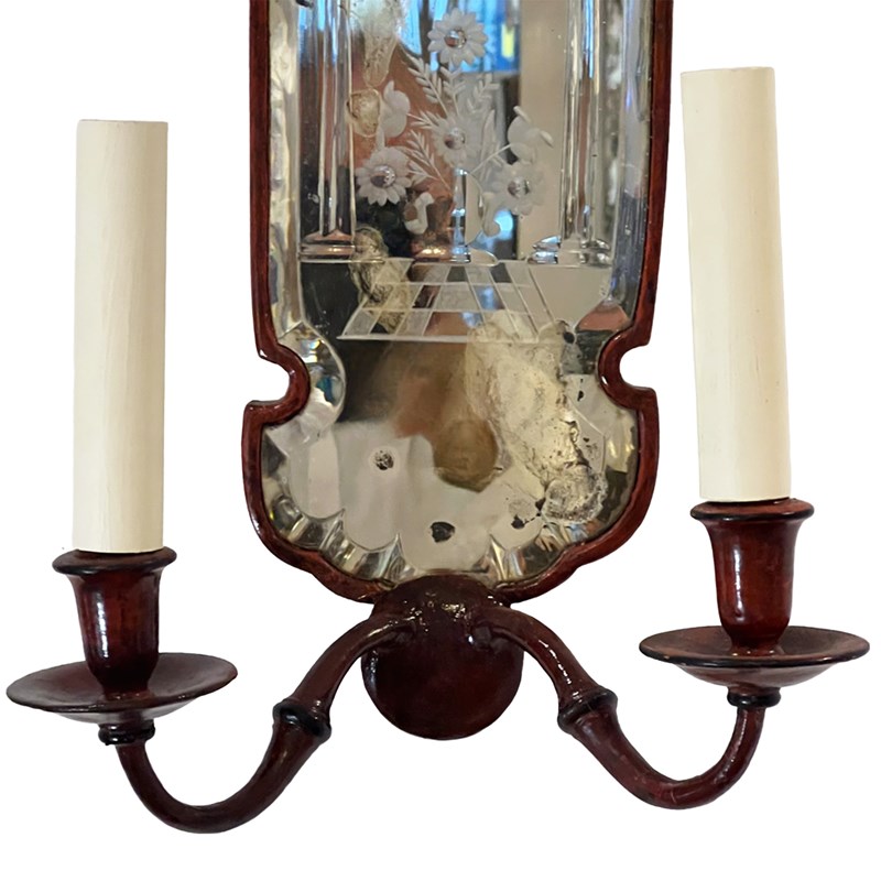 Each sconce has two arms extending from the bottom, supporting candle-style light holders. We've had these sconces rewired for the UK, this can easily be adapted for any destination - please get in touch for more details.
