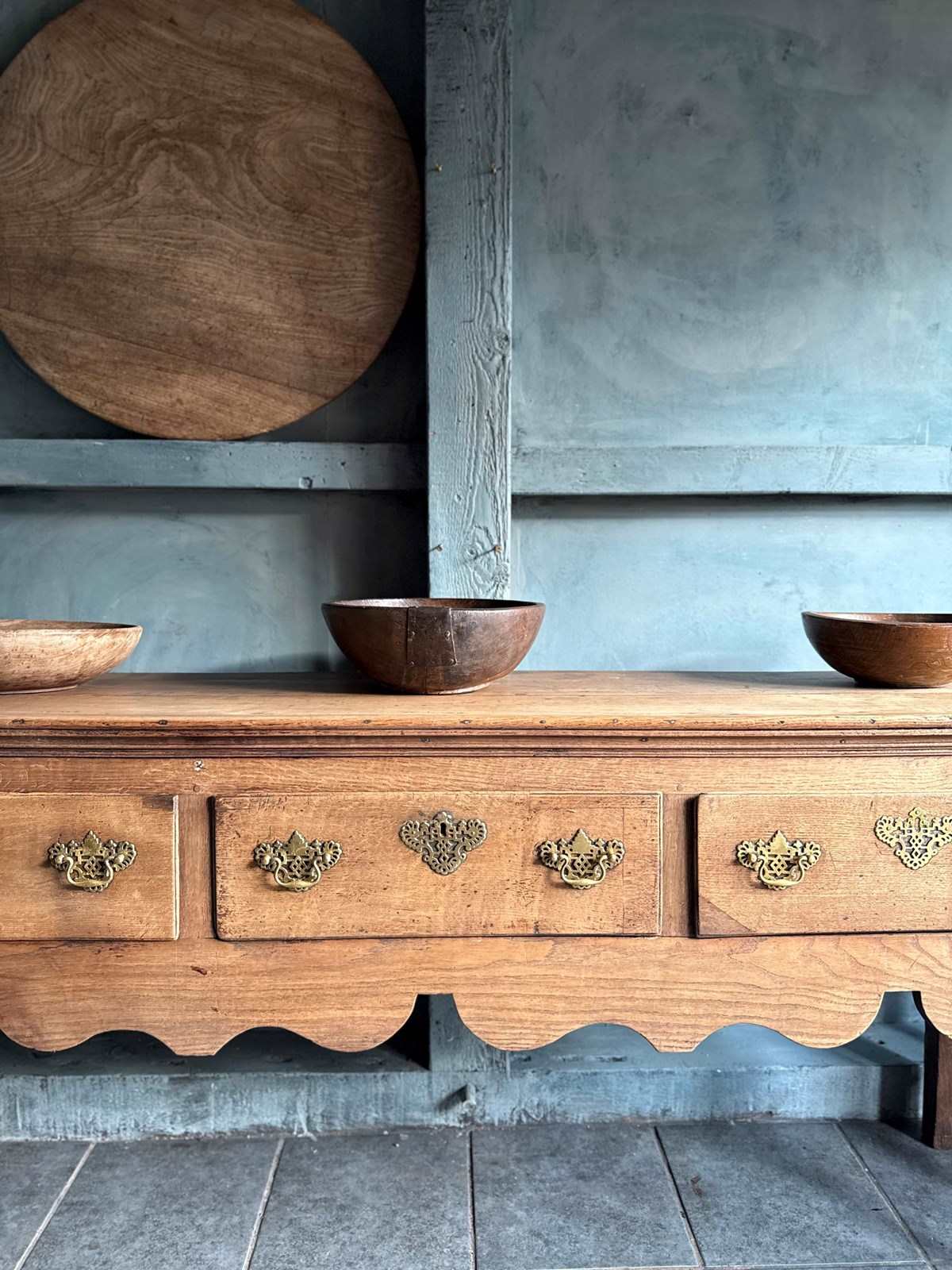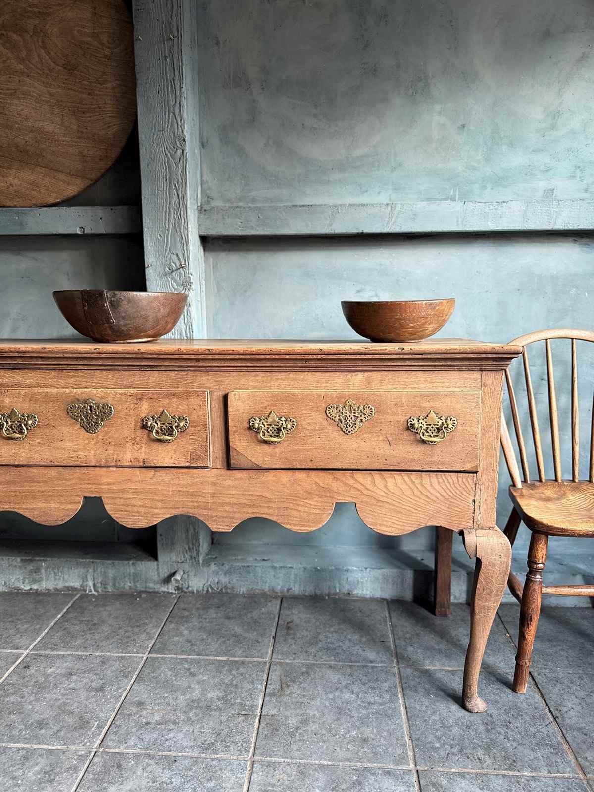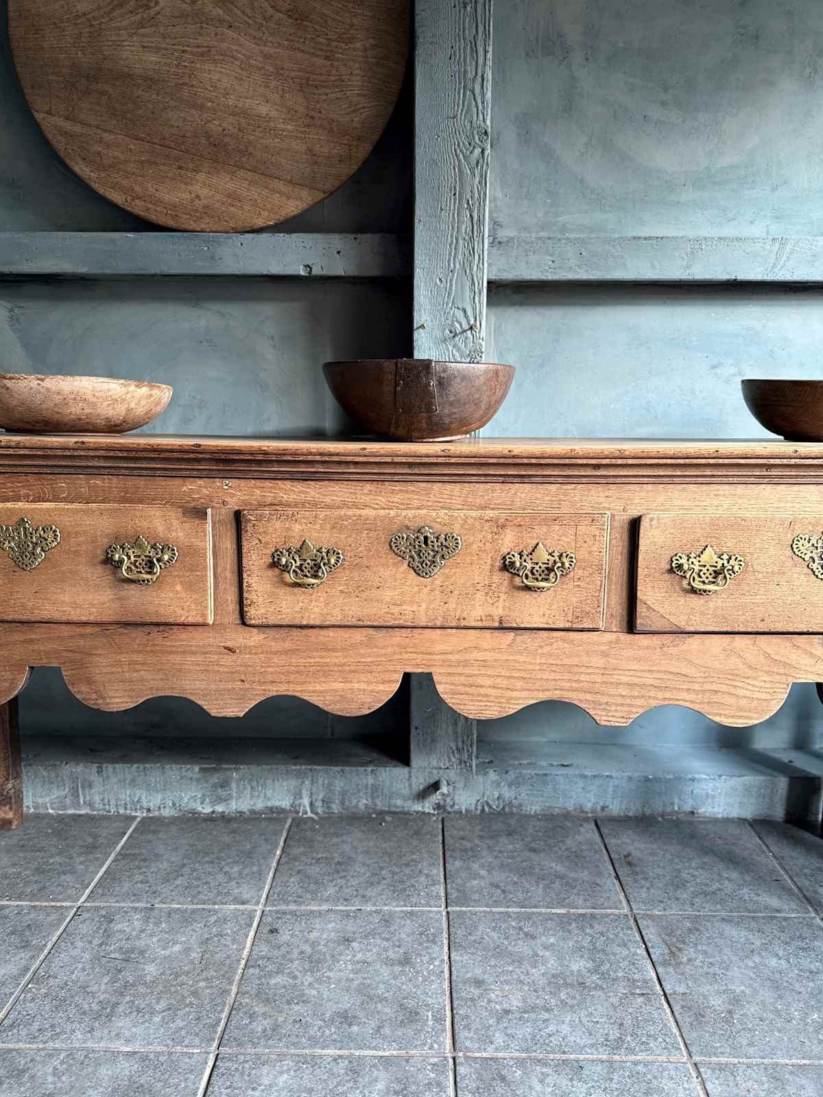 A good high Elm and oak open dresser. Original handles, good colour and well stood.