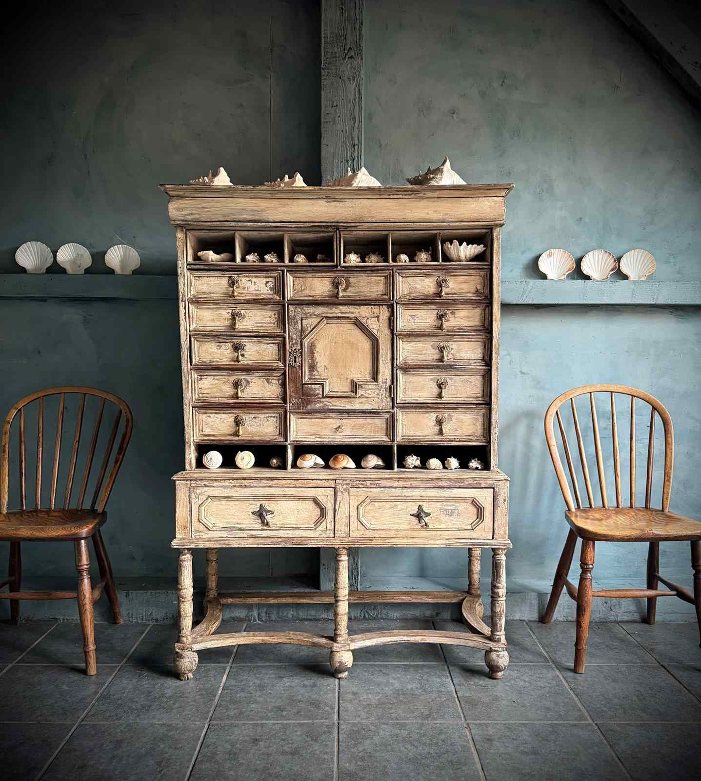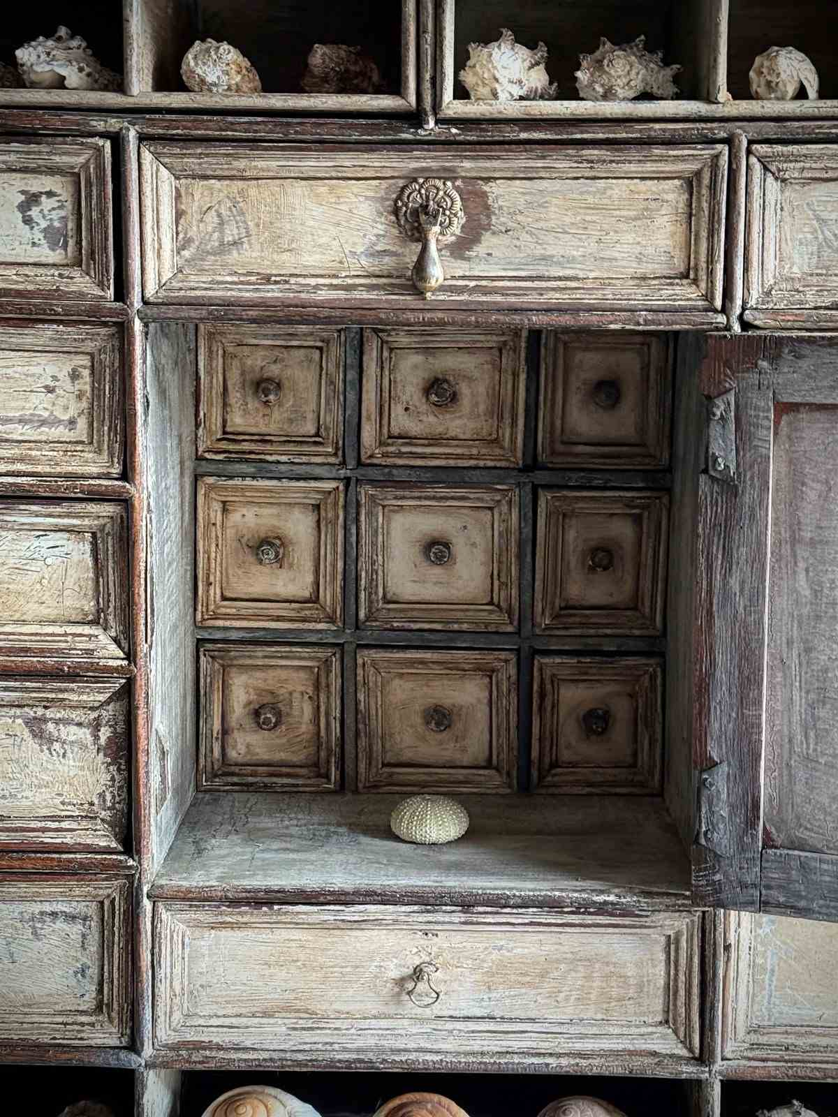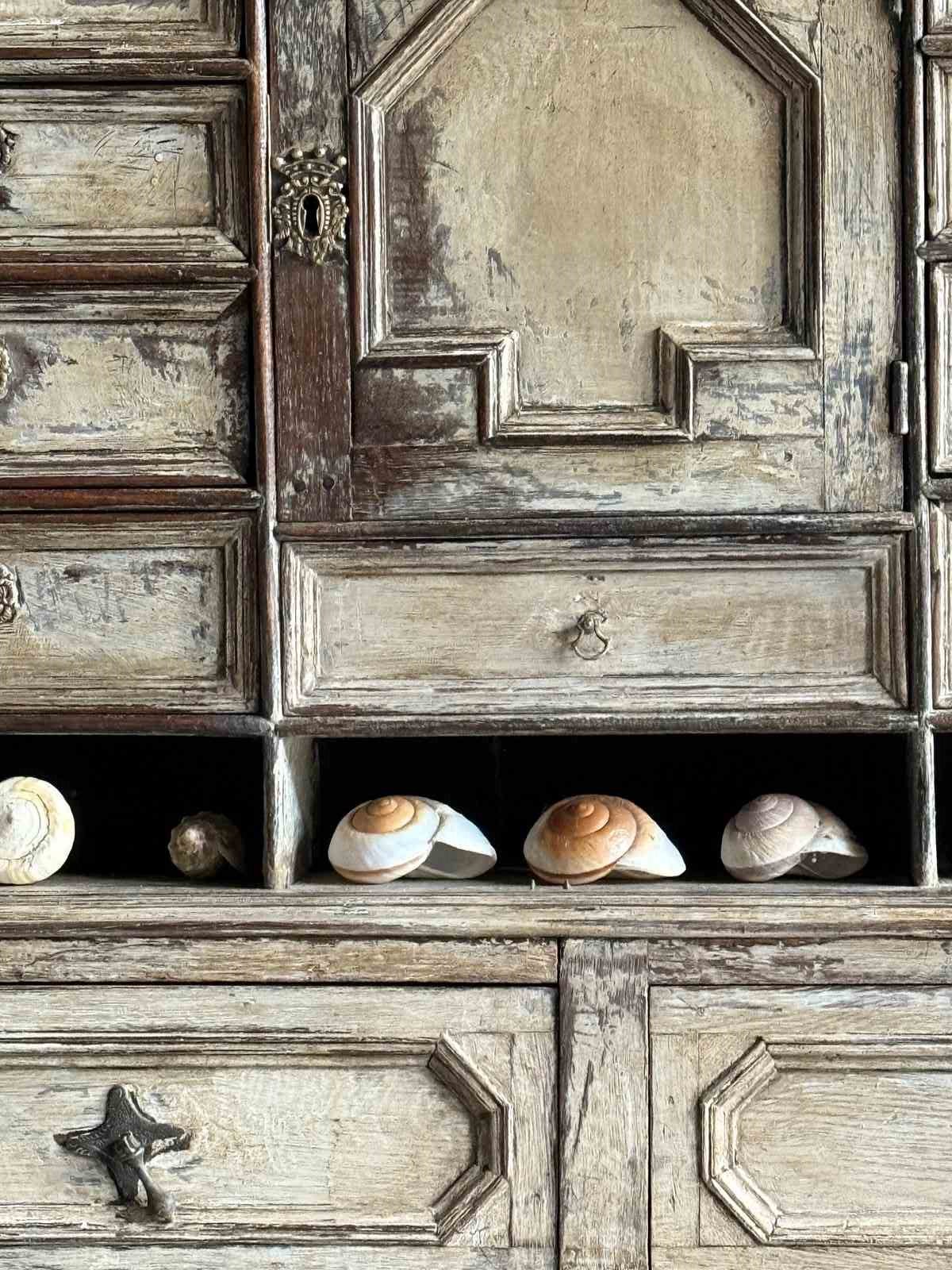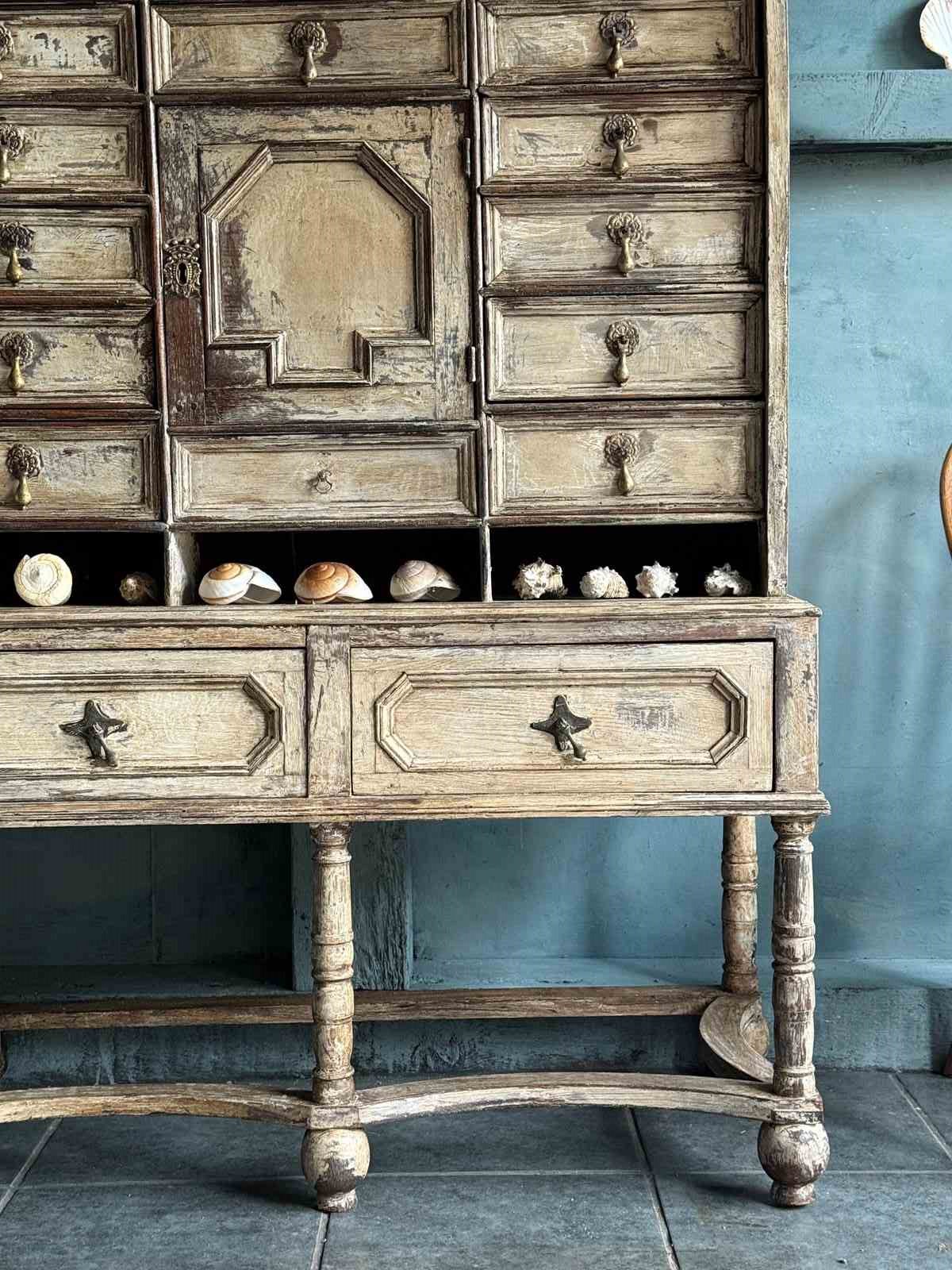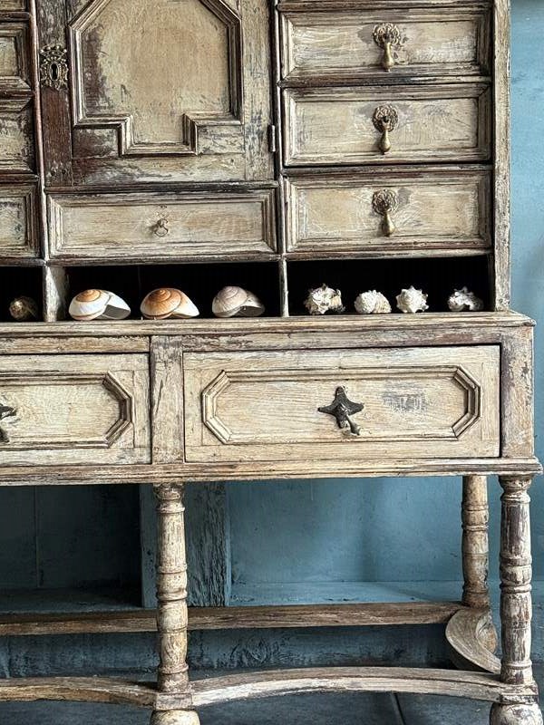17 th c and later English curiosity cabinet, with lots of secret drawers, good form and colour .