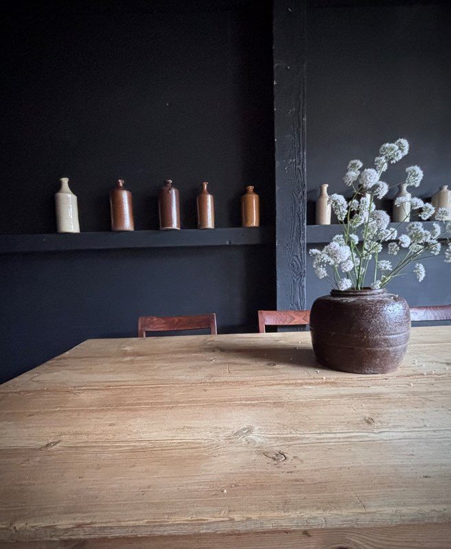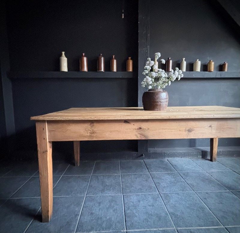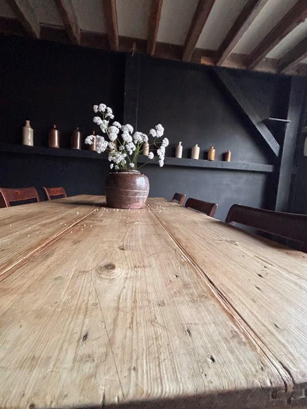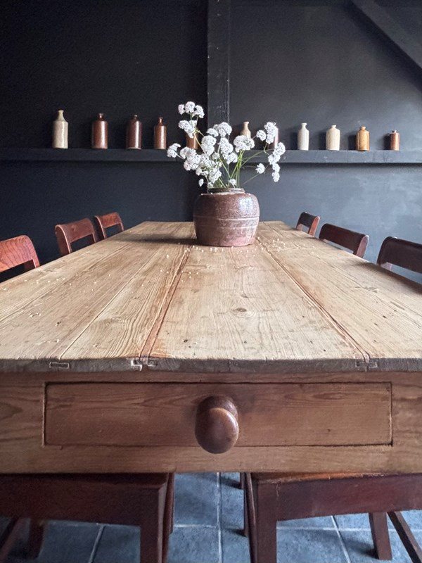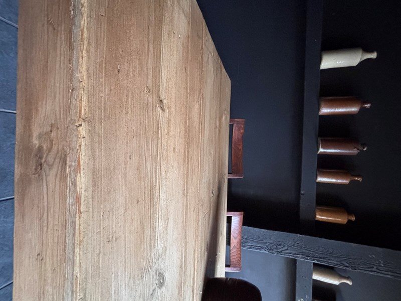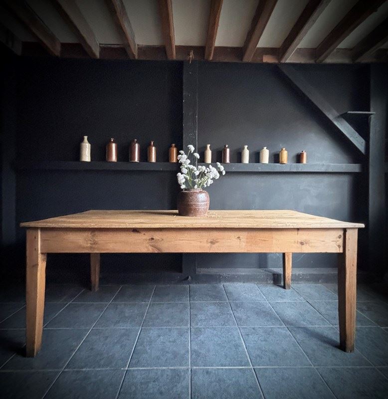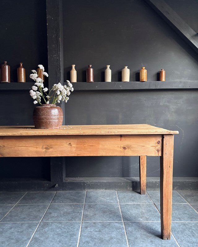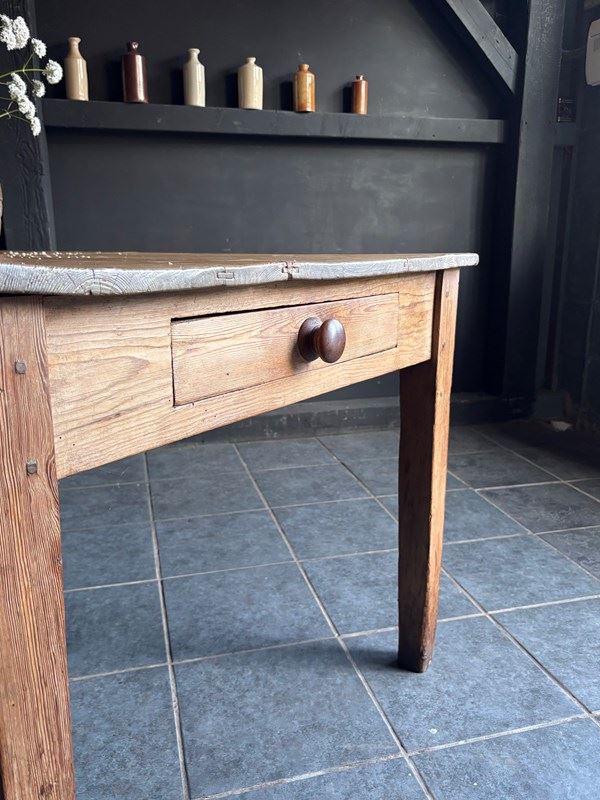 Simple North country English scrubbed pine table in good condition and beautiful worn patina.