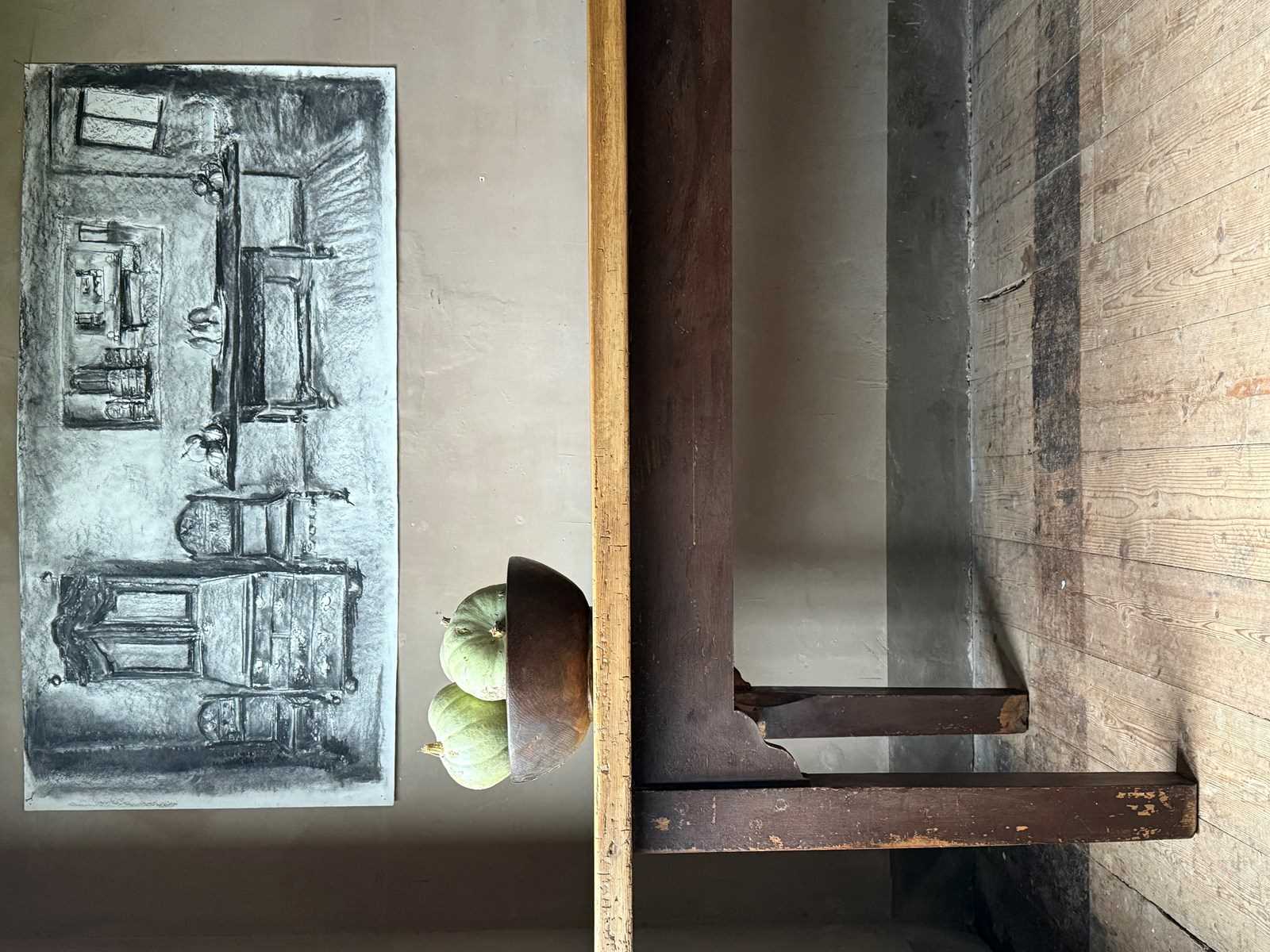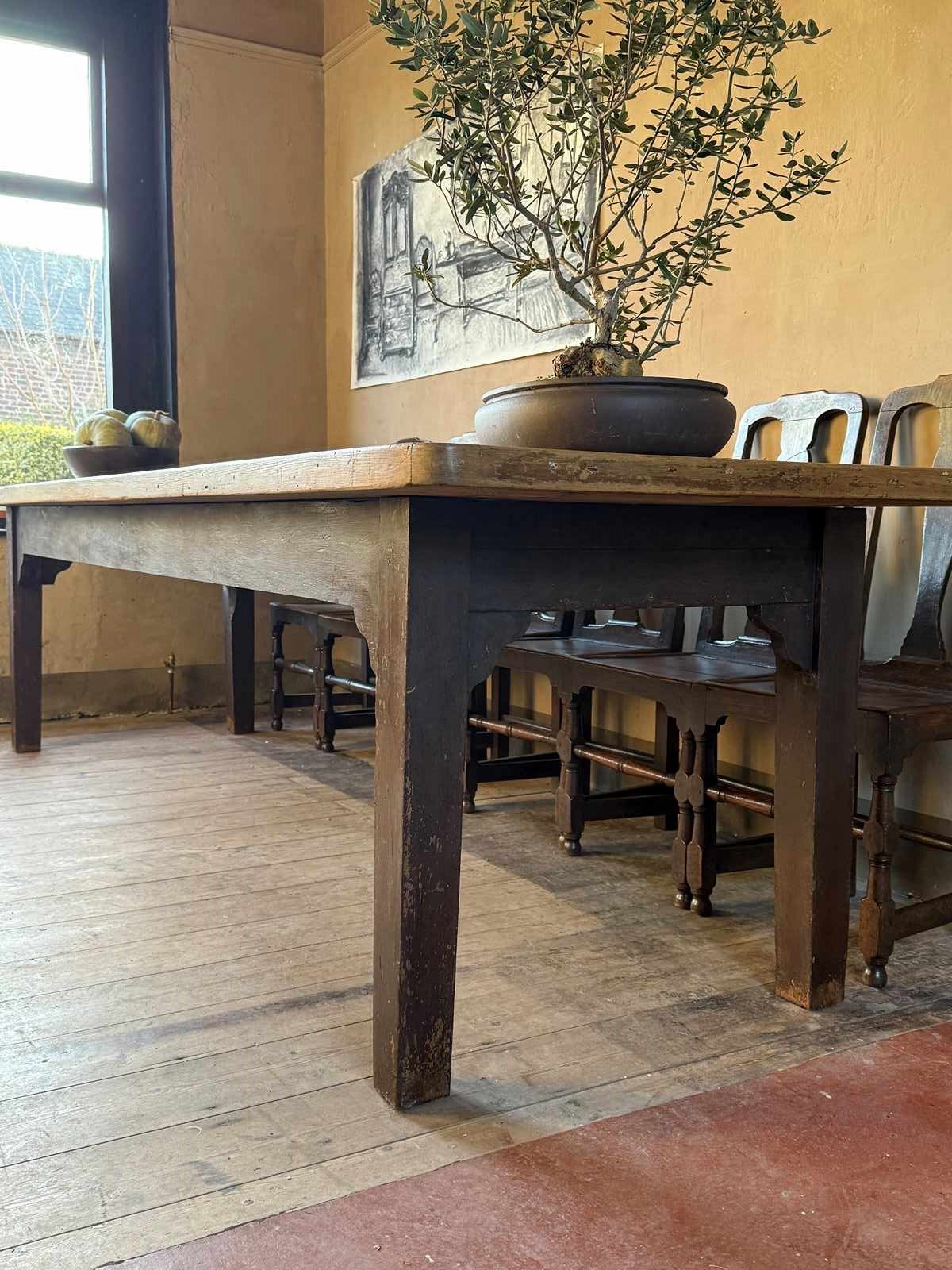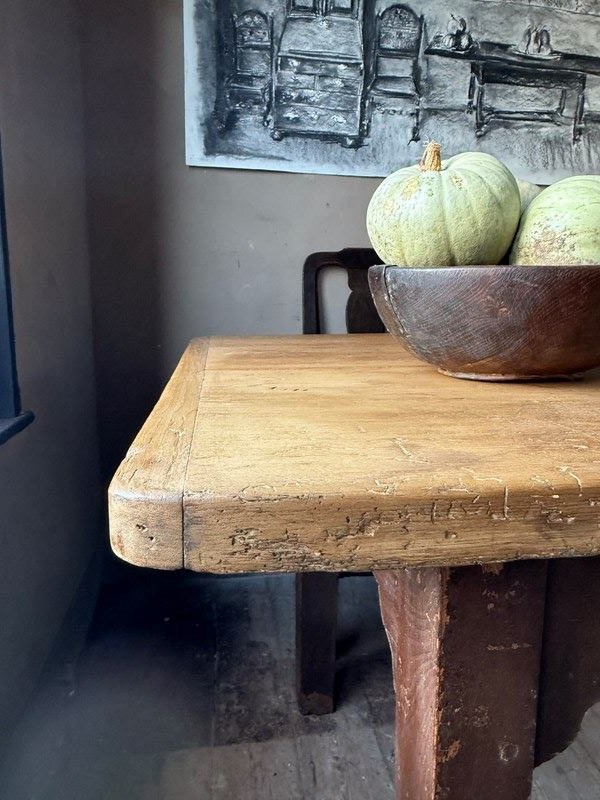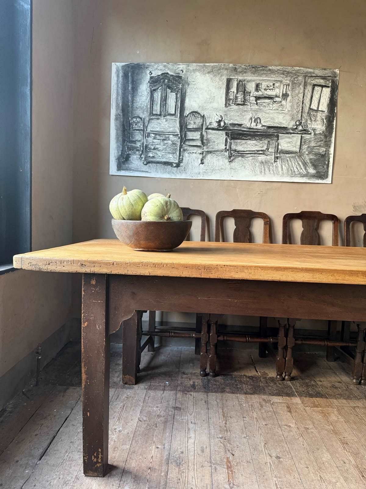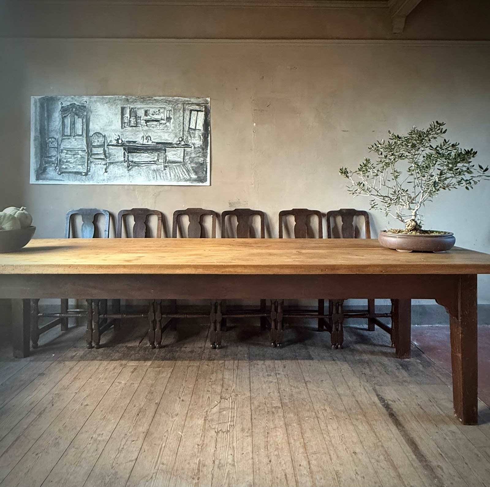 Huge two plank top pine table from estate in Wales , fresh to the trade , wonderful top , extra wide, good strong form , original paint seat, top lifts off for access , plenty leg room.