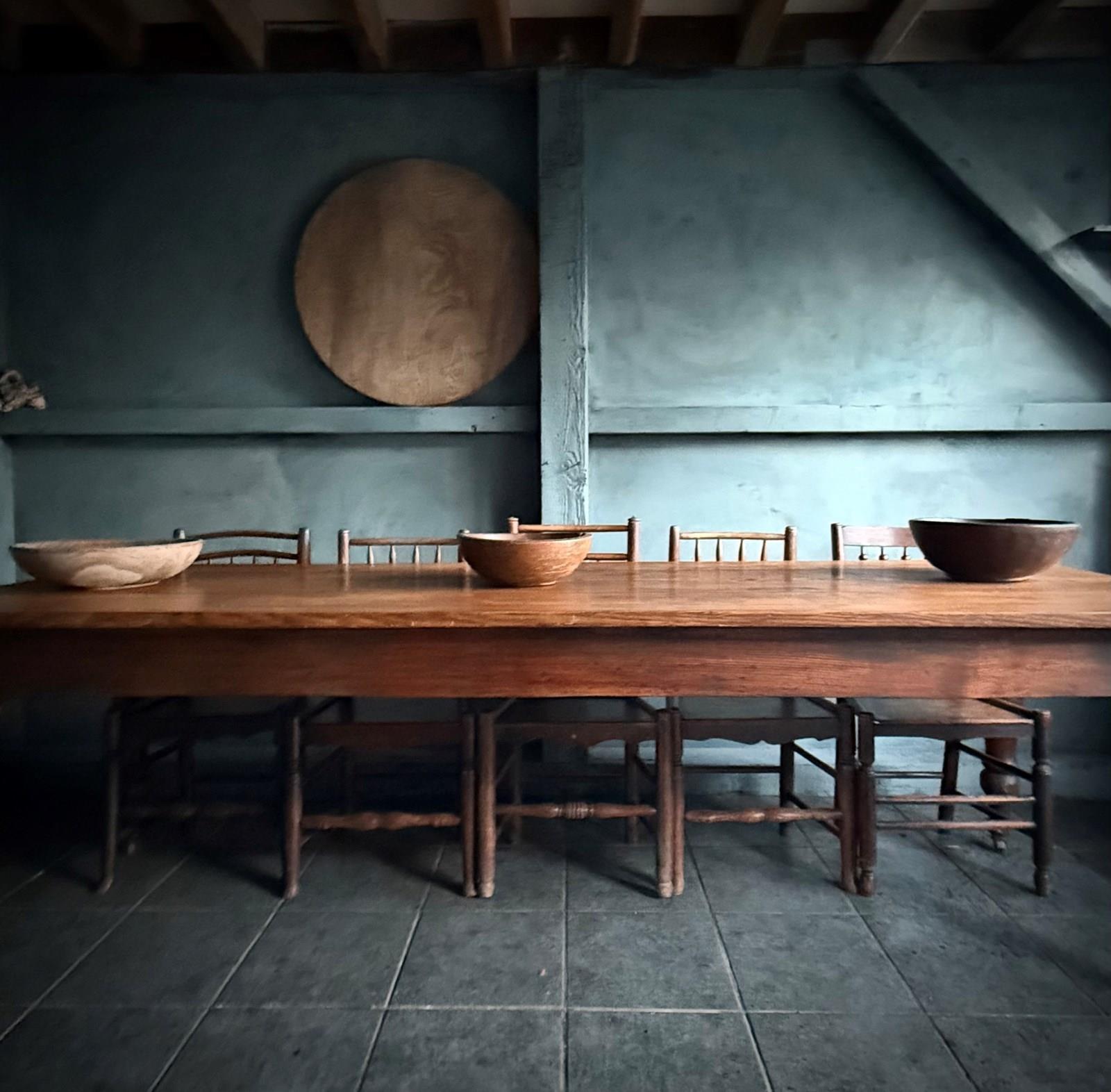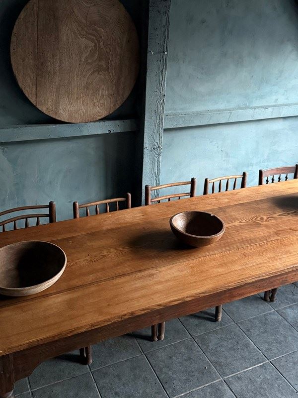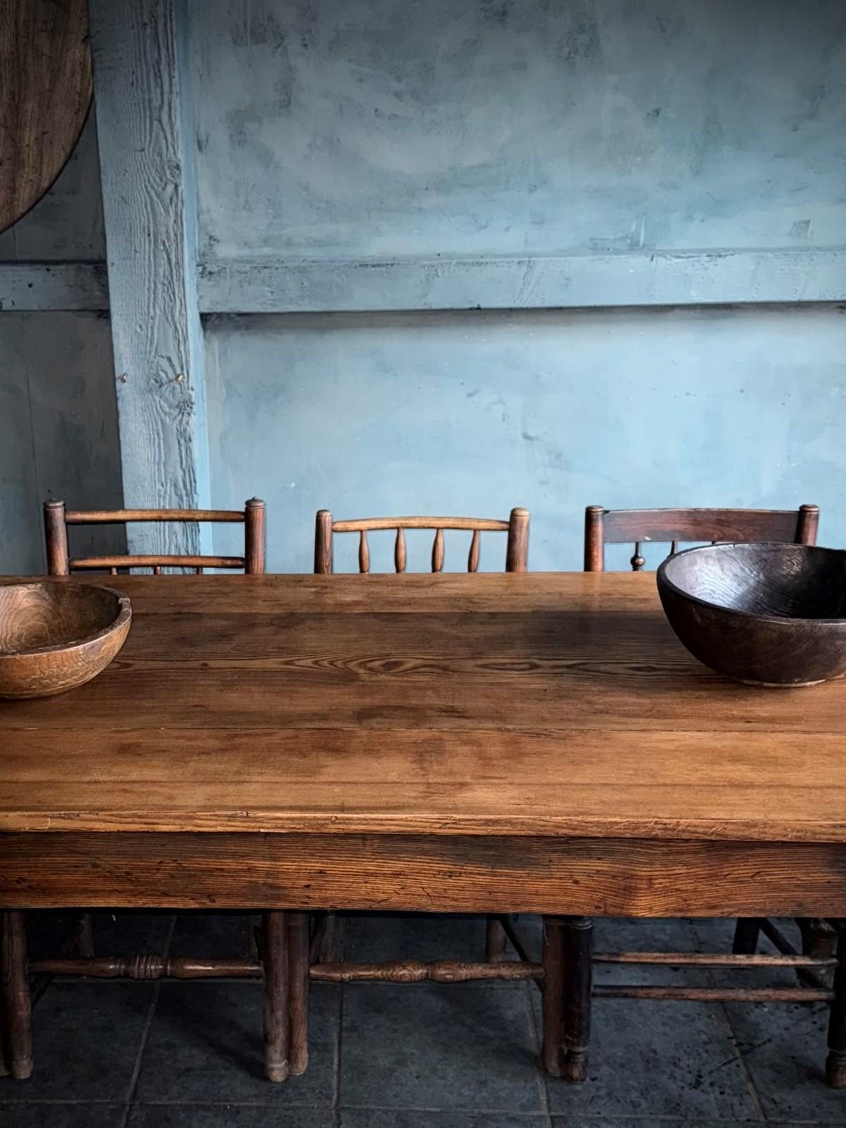 A good strong North country farmhouse pine table in original finish three boards in Scot’s pine.