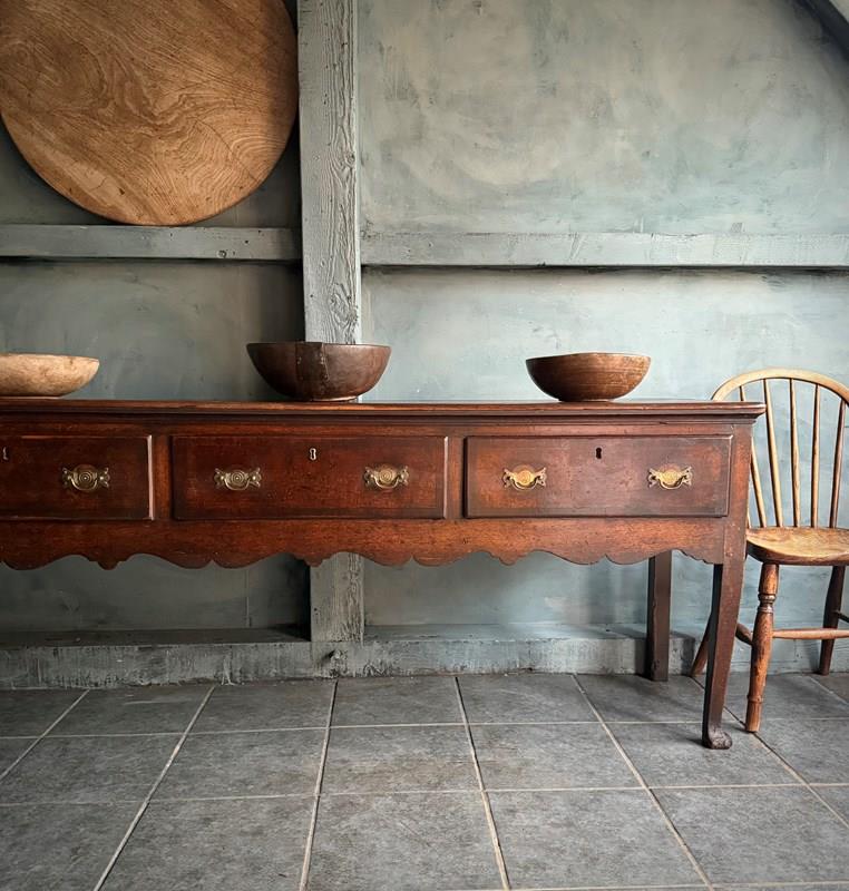 Well stood North country antique Georgian farmhouse leggy dresser, good colour, skin and form.