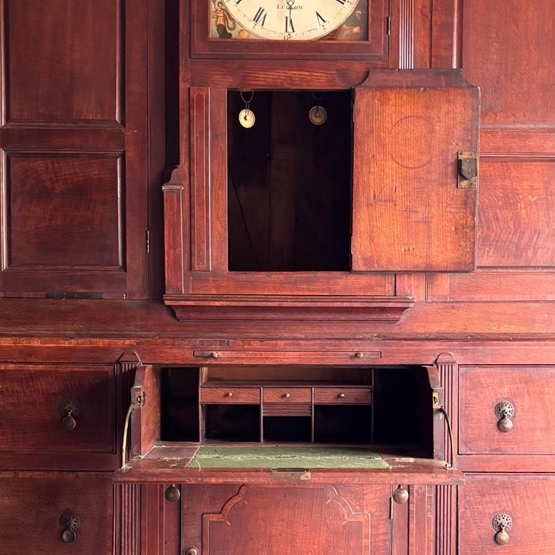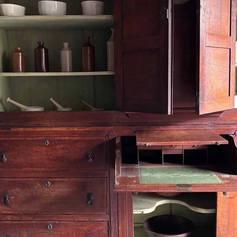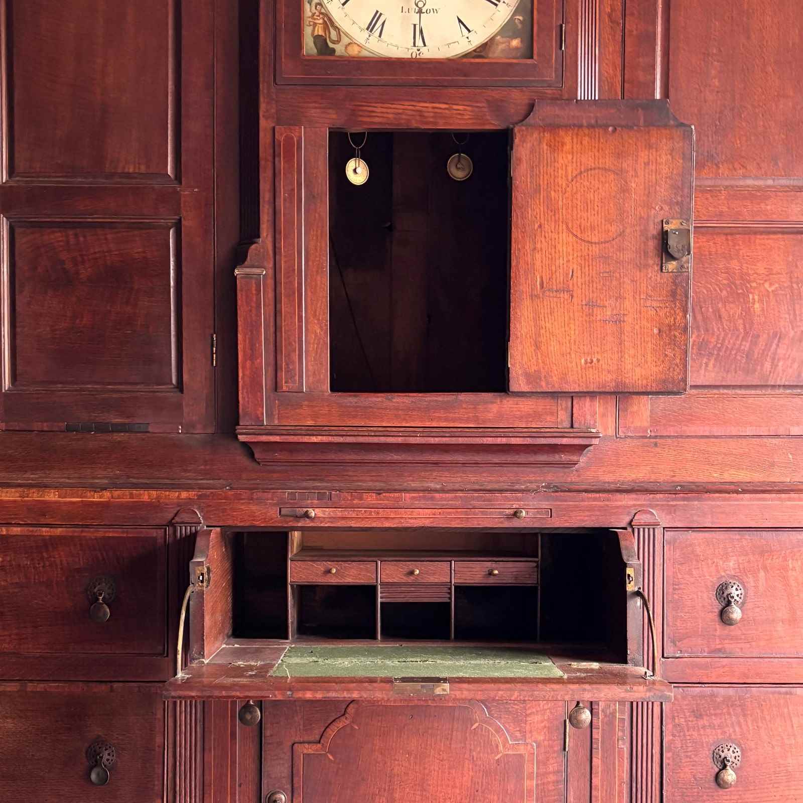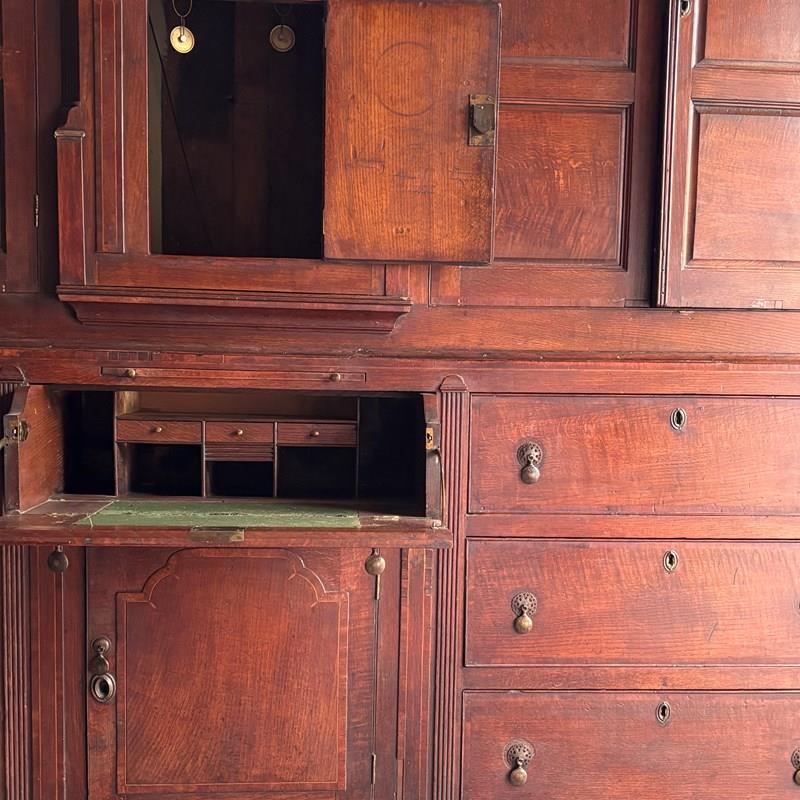 Rare Oak housekeeping cupboard from Ludlow splits, in good original condition. Has desk and lamp slide, splits in two for access.