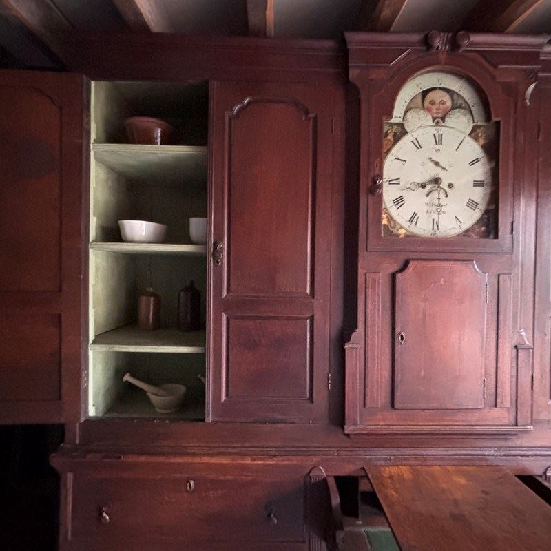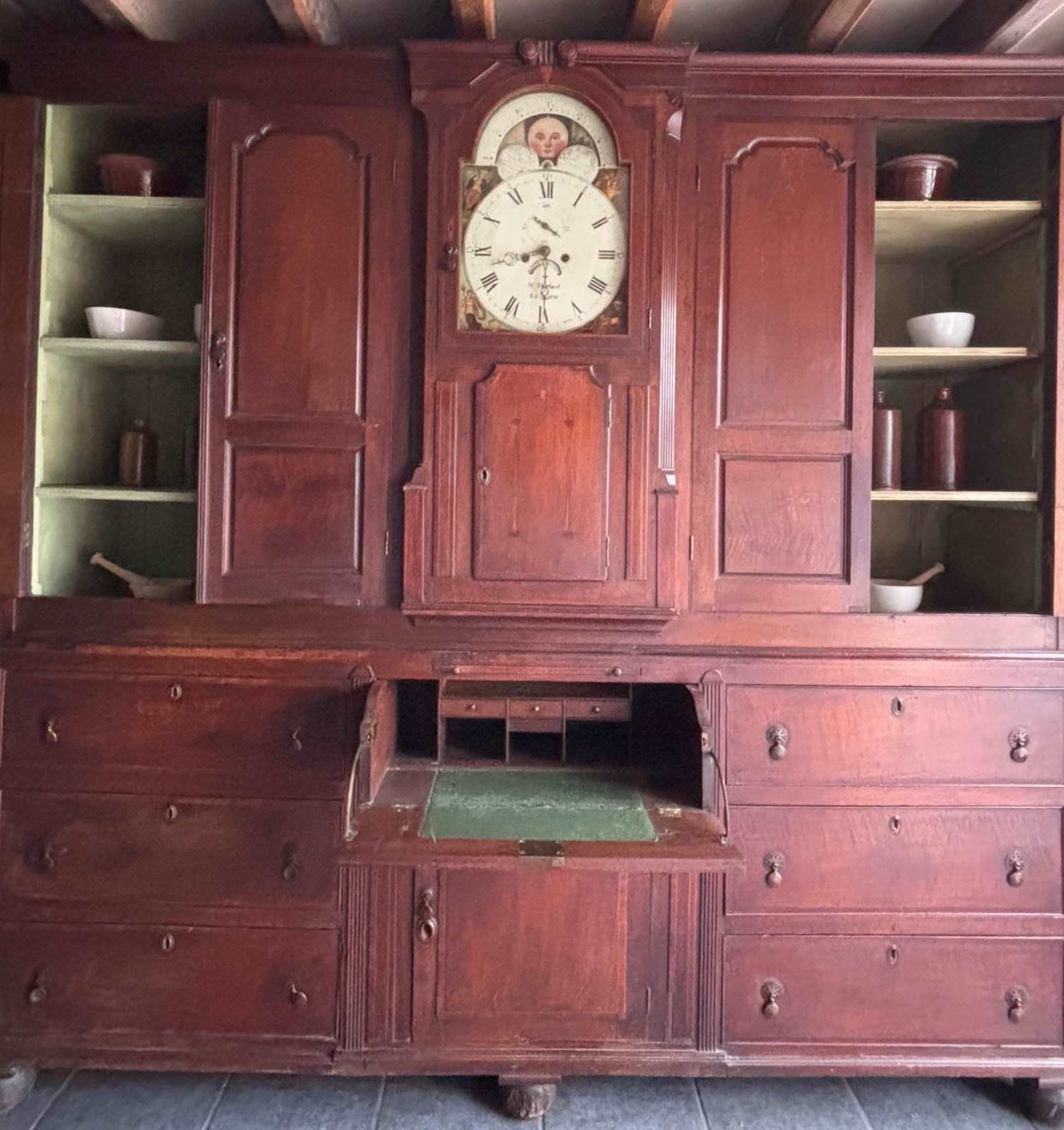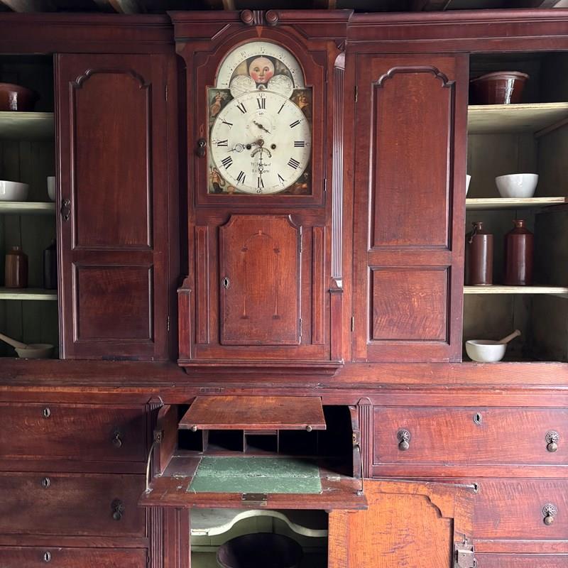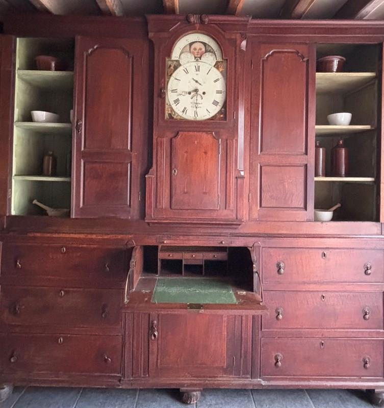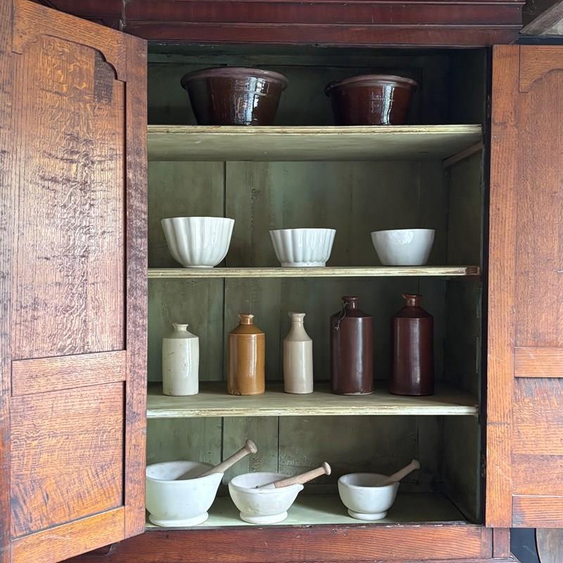 Rare Oak housekeeping cupboard from Ludlow splits, in good original condition. Has desk and lamp slide, splits in two for access.