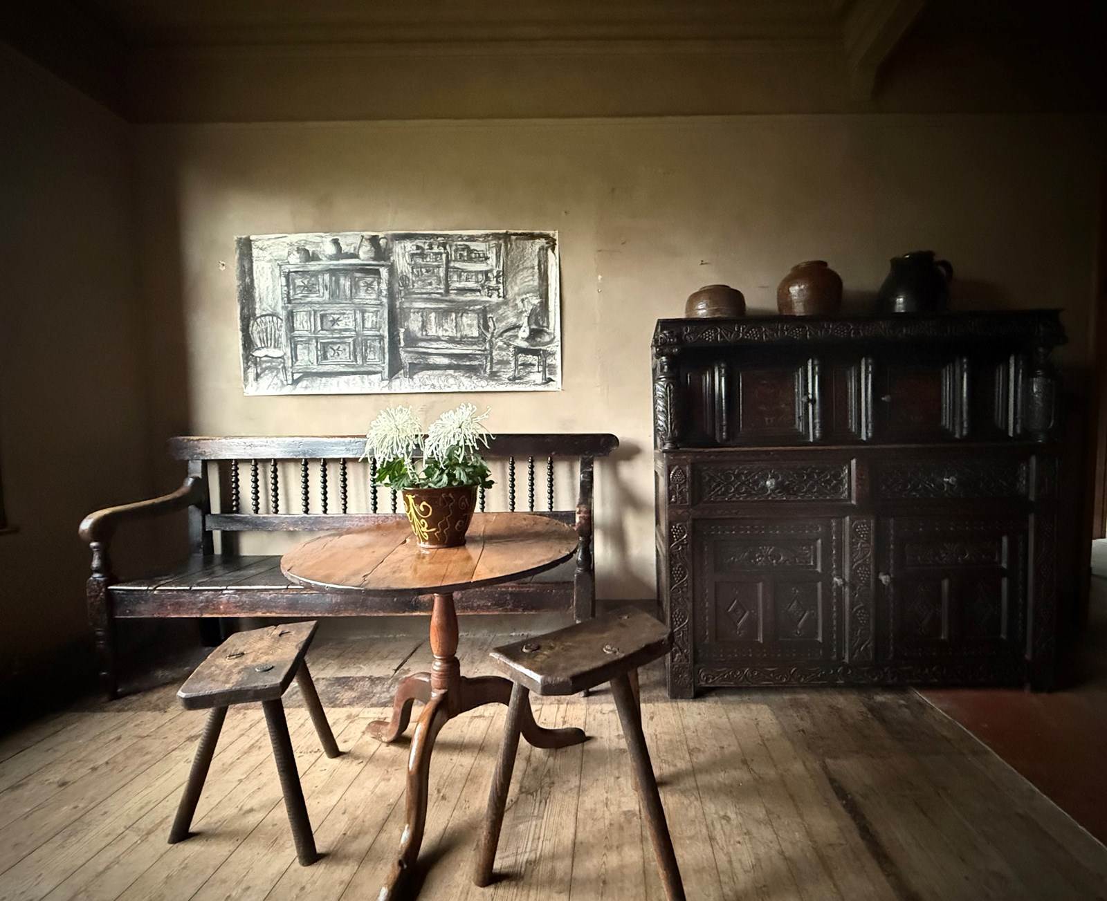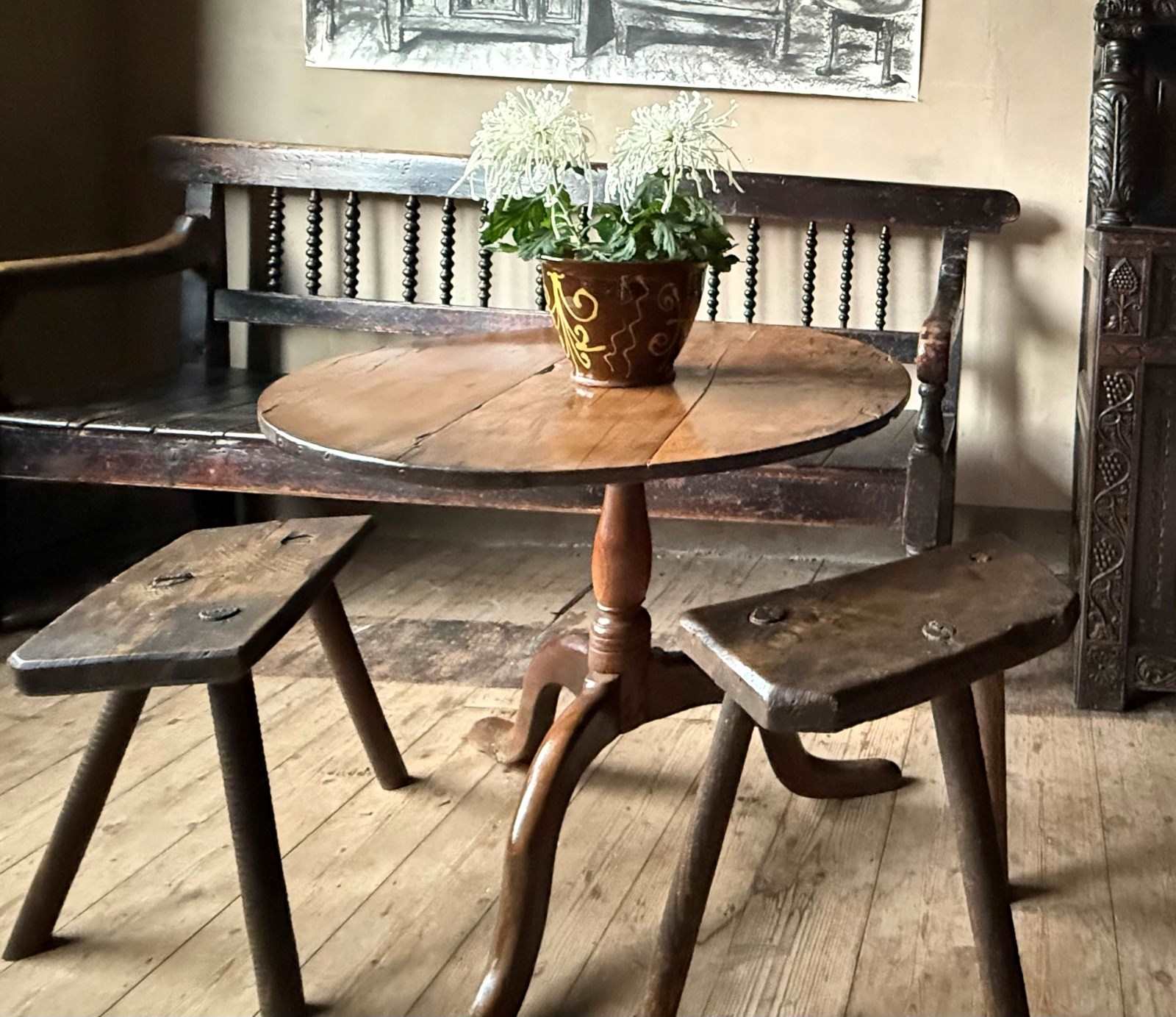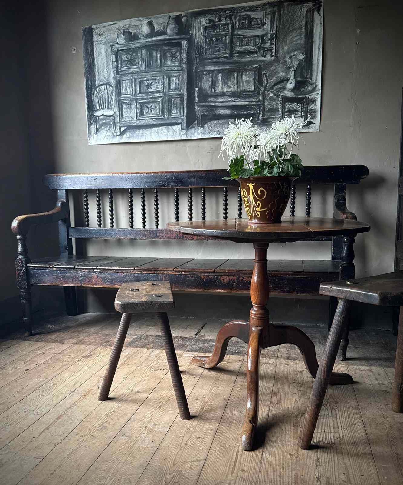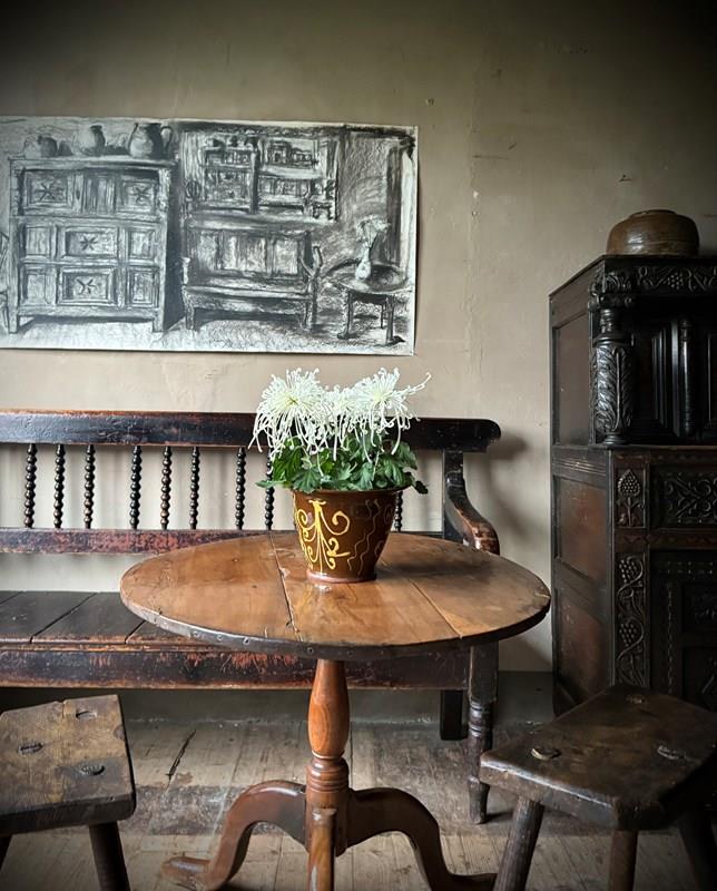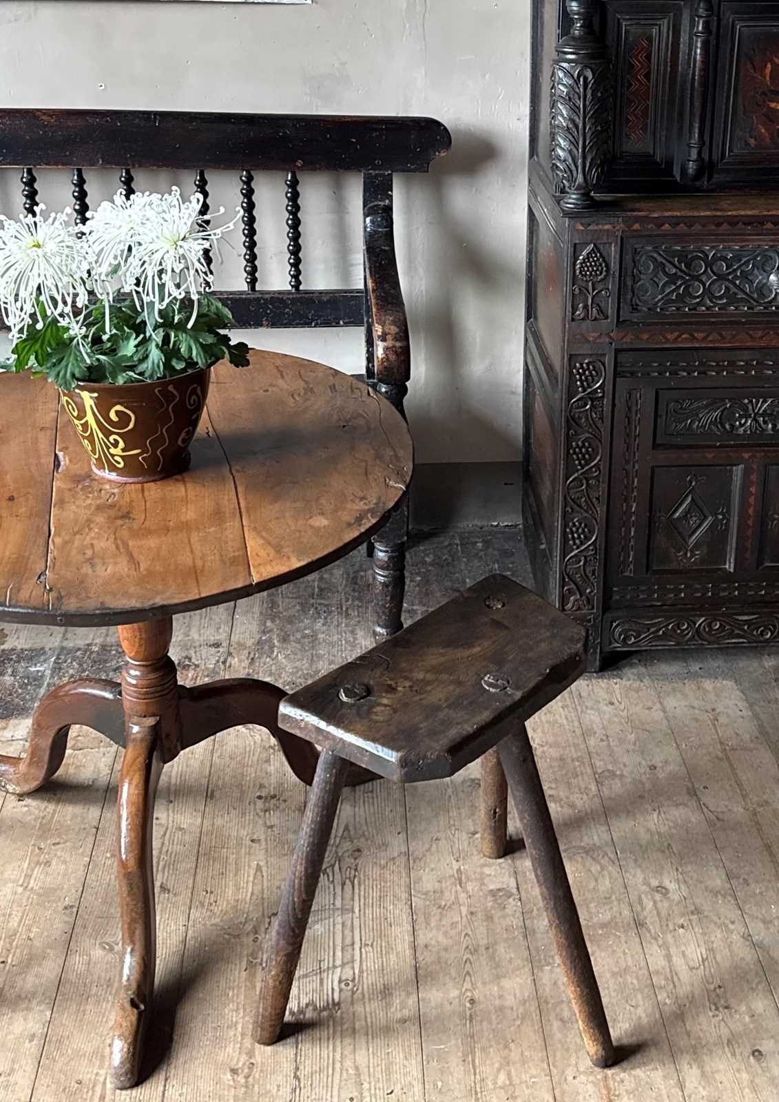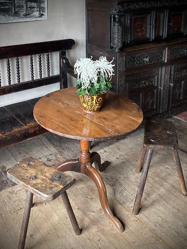 A good country Yew wood tilt top , blacksmith repair, good colour and no repairs to the wonky feet.
