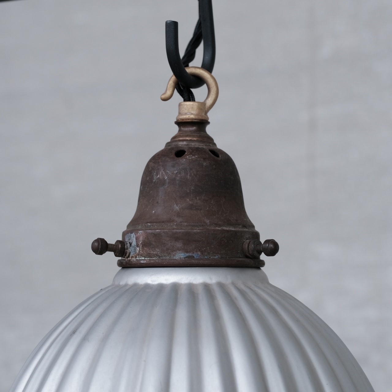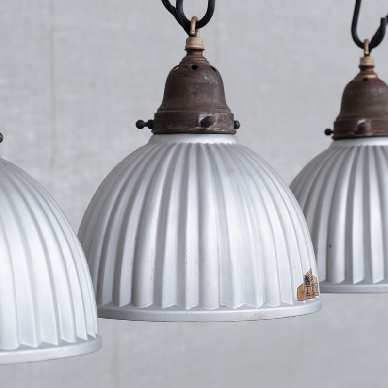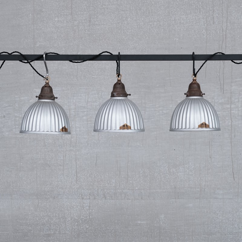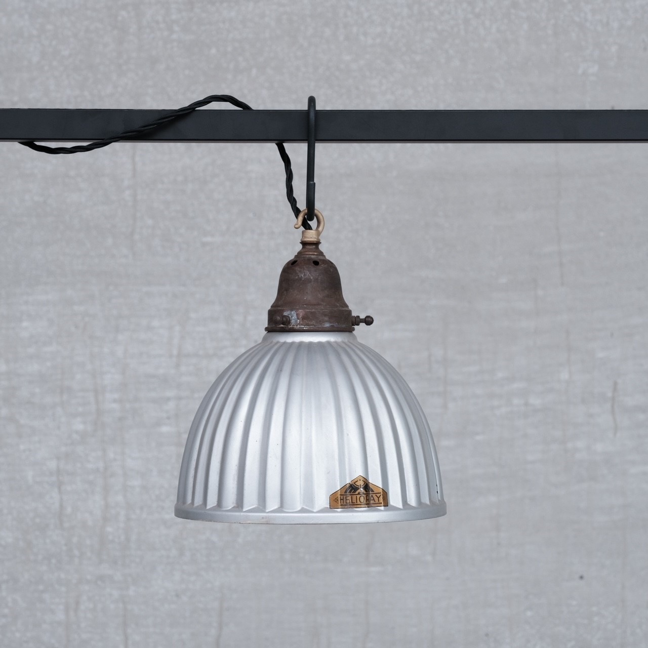 A run of English pendant lights. England, c1930s. Mercury glass reflector shades. Priced and sold individually. Re-wired and PAT tested.